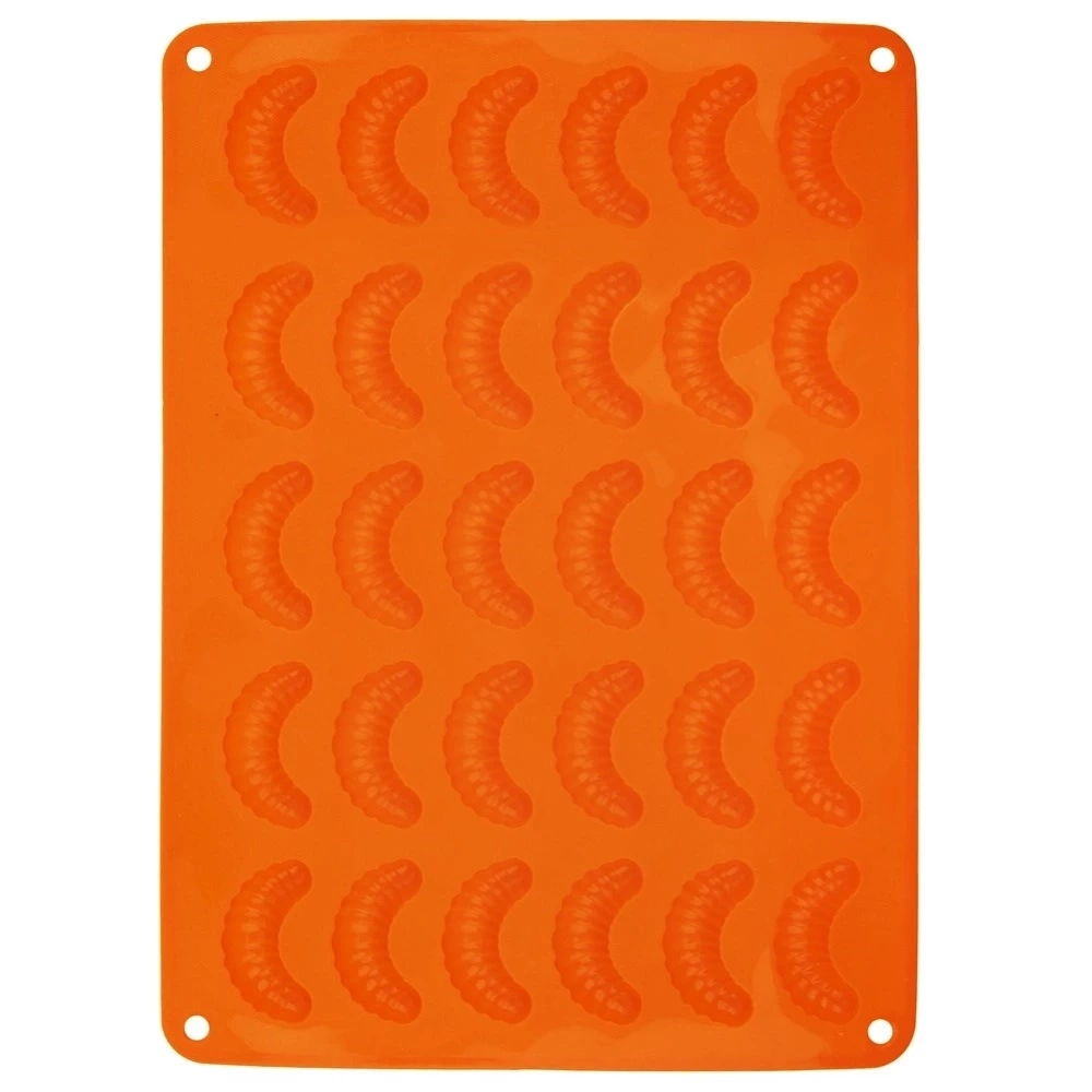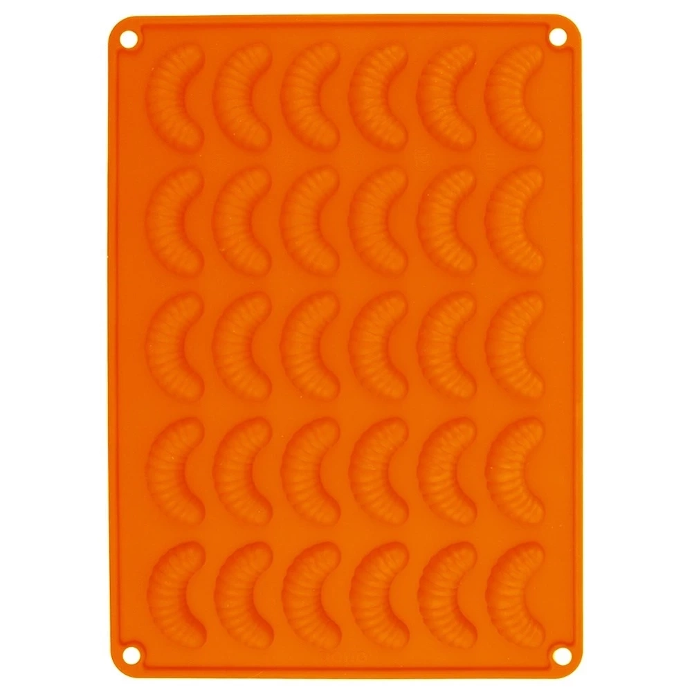 Silikonowa foremka pozwalająca upiec 30 kruchych rogalików. Możemy przygotować w niej ciastka, praliny, a także czekoladki w kształcie rogalika. Foremka nie wchłania zapachów i smaków. Ciasto nie przywiera, idealnie się wyciąga. Do wypieku nie używa się żadnego tłuszczu czy mąki. Forma silikonowa jest lekka, elastyczna, zajmuje mało miejsca i jest odporna na zmiany temperatury. Bardzo dobrze przewodzi ciepło. Oryginalny produkt czeskiej marki Orion. Wyprodukowano zgodnie z europejskimi standardami.