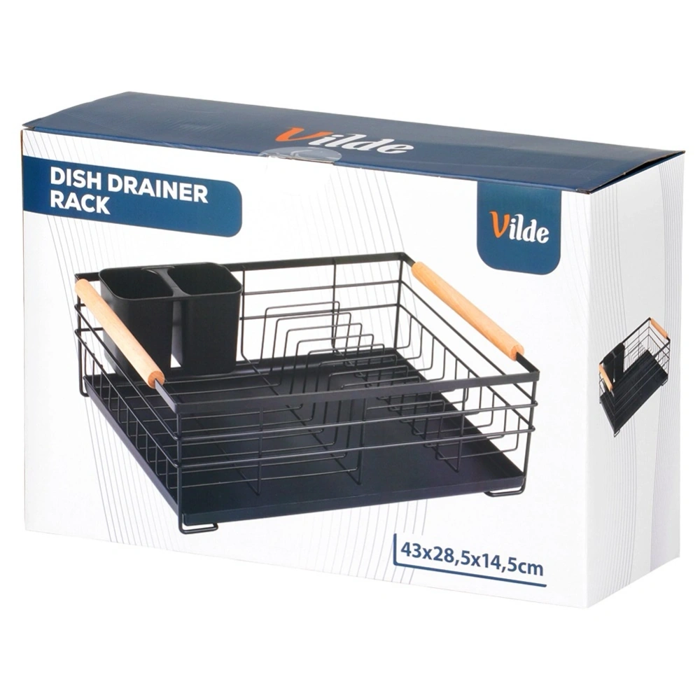 Kompaktowa suszarka na naczynia z miejscem na talerze oraz sztućce. Wykonana z wytrzymałych materiałów. Dzięki niej zapomnisz o nieuporządkowanych naczyniach i mokrych śladach na blacie szafek przy zlewie. Suszarka to niezbędny element wyposażenia kuchni. Wykonana w eleganckim stylu, a zarazem funkcjonalna. Łatwa w czyszczeniu. Posiada wyjmowaną tacę ociekową, dzięki czemu utrzymanie jej w czystości nie stanowi problemu. Oryginalny produkt marki Vilde. Wyprodukowano zgodnie z europejskimi standardami.