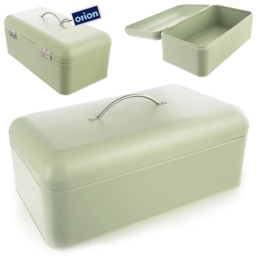 - Duży chlebak wykonany z najwyższej jakości metalu w pastelowym, zielonym kolorze. Posiada wygodną pokrywkę na zawiasach, otwieraną za pomocą uchwytu.