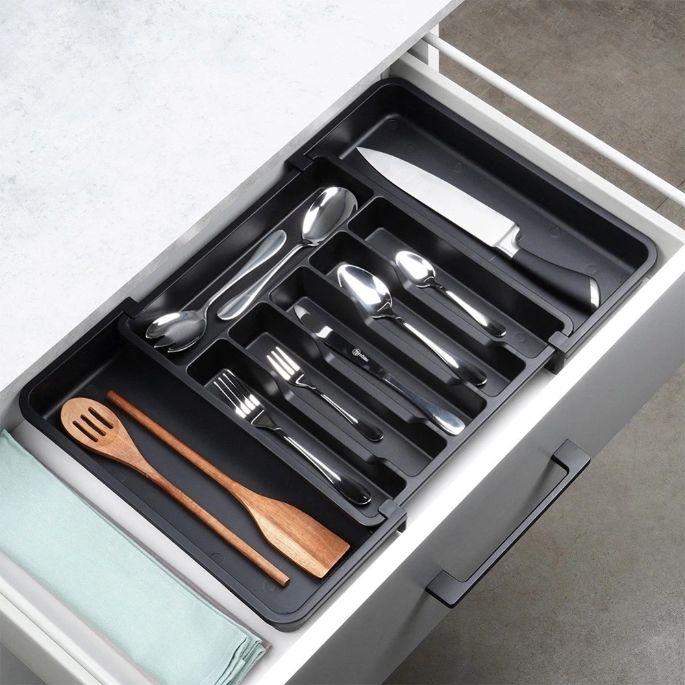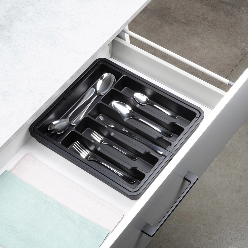 - Niezwykle praktyczny organizer na sztućce, noże i przybory kuchenne. Zajmuje mało miejsca, ale dzięki swojej konstrukcji jest bardzo pojemny - możliwość rozsuwania do 56,5 cm.