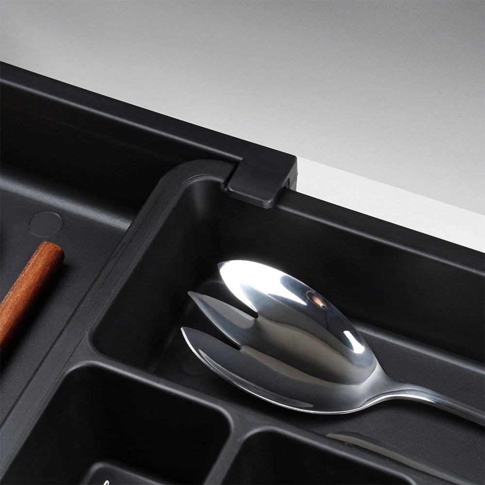 - Wykonany z wytrzymałych materiałów - Wykonany z najwyższej jakości tworzywa w czarnym kolorze. Wkład do szuflady jest wytrzymały i solidny.