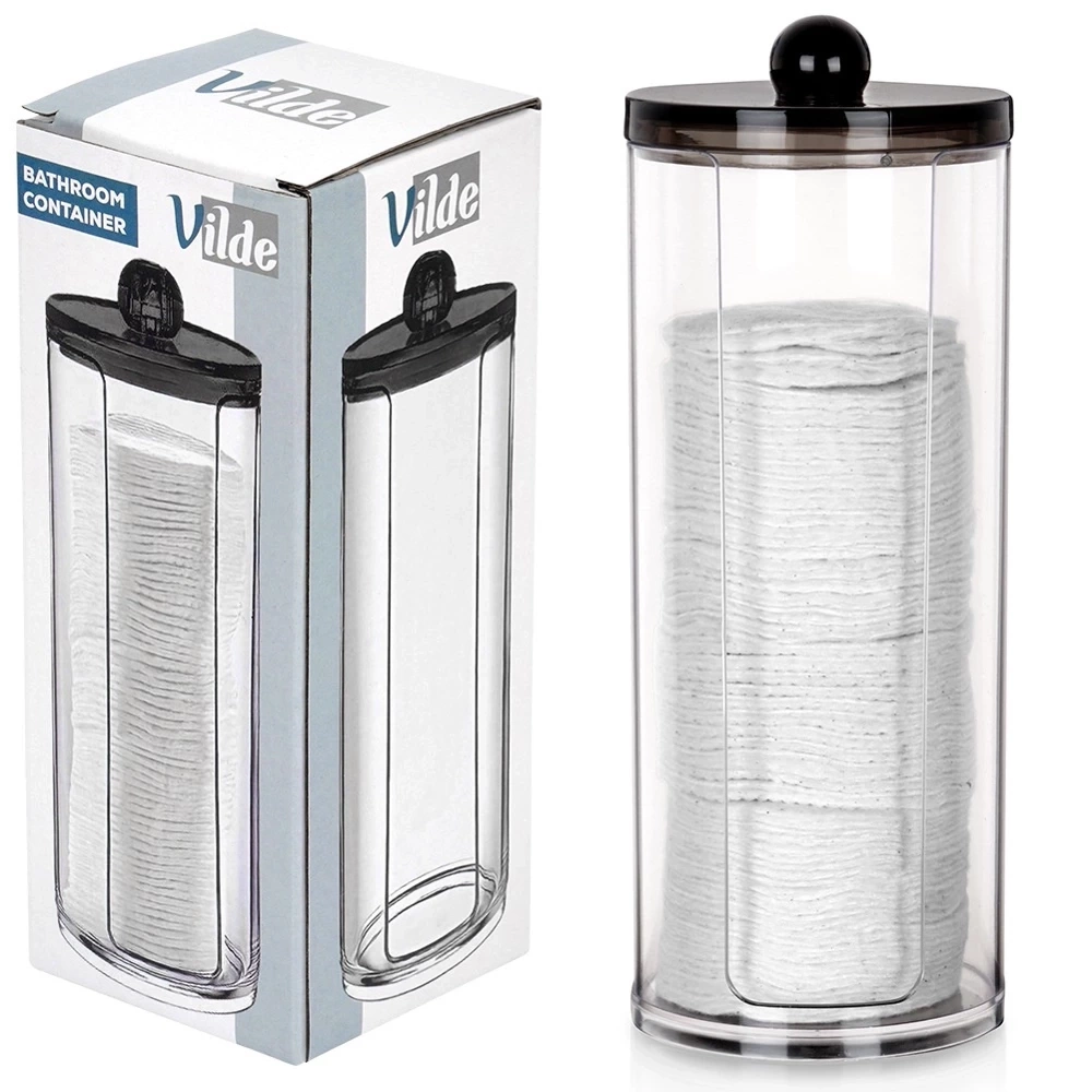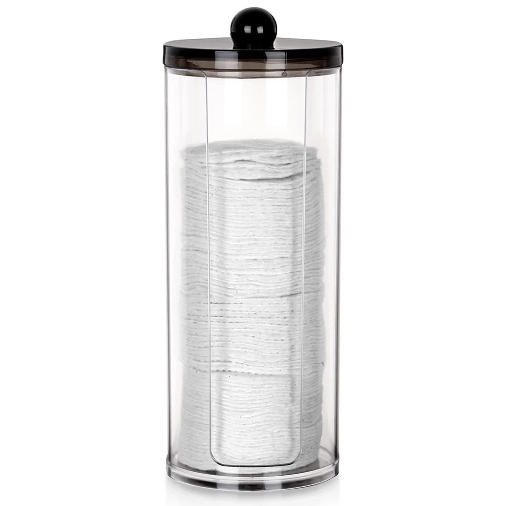 - Pojemnik na płatki kosmetyczne - Praktyczny pojemnik do przechowywania płatków kosmetycznych wykonany z przezroczystego akrylu. Pojemnik ma średnicę 7 cm i wysokość 19 cm.