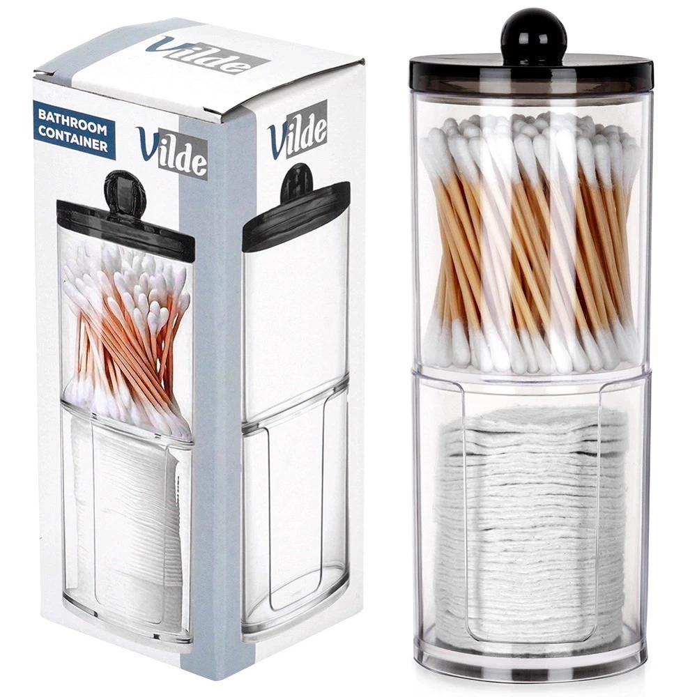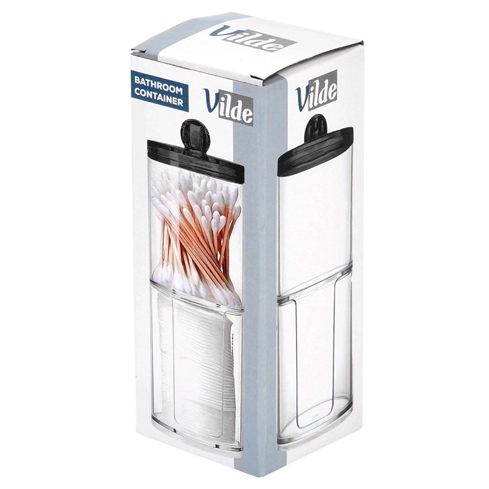 Dwupoziomowy pojemnik na patyczki lub płatki kosmetyczne to praktyczny dodatek do łazienki. Zestaw wyróżnia się nowoczesnym, prostym wzornictwem, które doskonale wpasowuje się w wystrój każdej łazienki. Przezroczysty kolor pozwala zobaczyć, ile patyczków lub płatków zostało. Oryginalny produkt marki Vilde. Wyprodukowano zgodnie z europejskimi standardami.