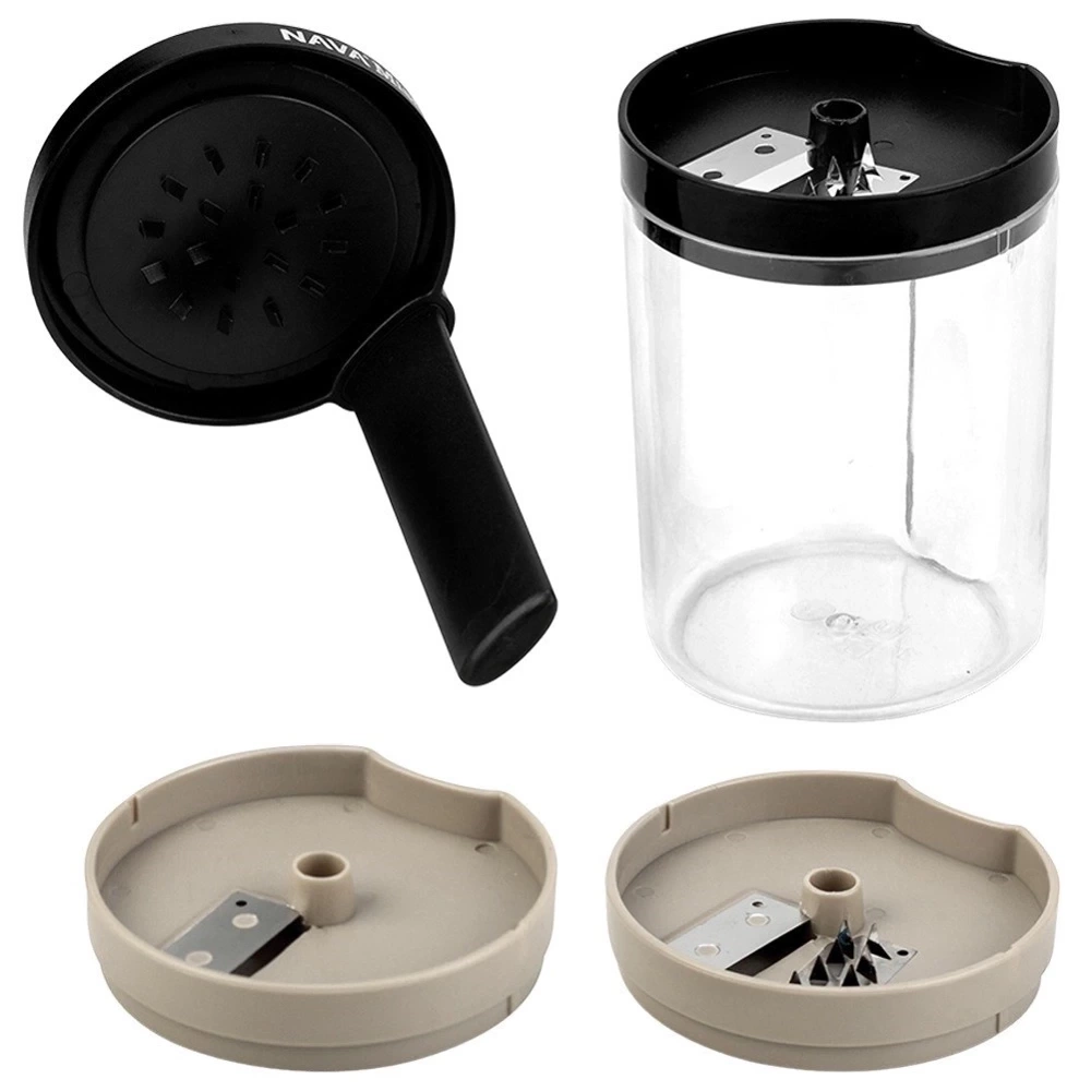 - Ostrza ze stali nierdzewnej - Ostrza szatkownicy wykonane ze stali nierdzewnej, co zapewni długotrwałe użytkowanie. Pojemnik oraz pozostałe elementy wykonane z tworzywa. Pojemnik ma przezroczysty kolor.