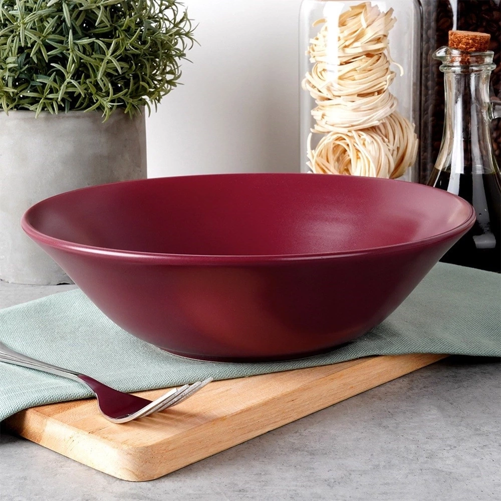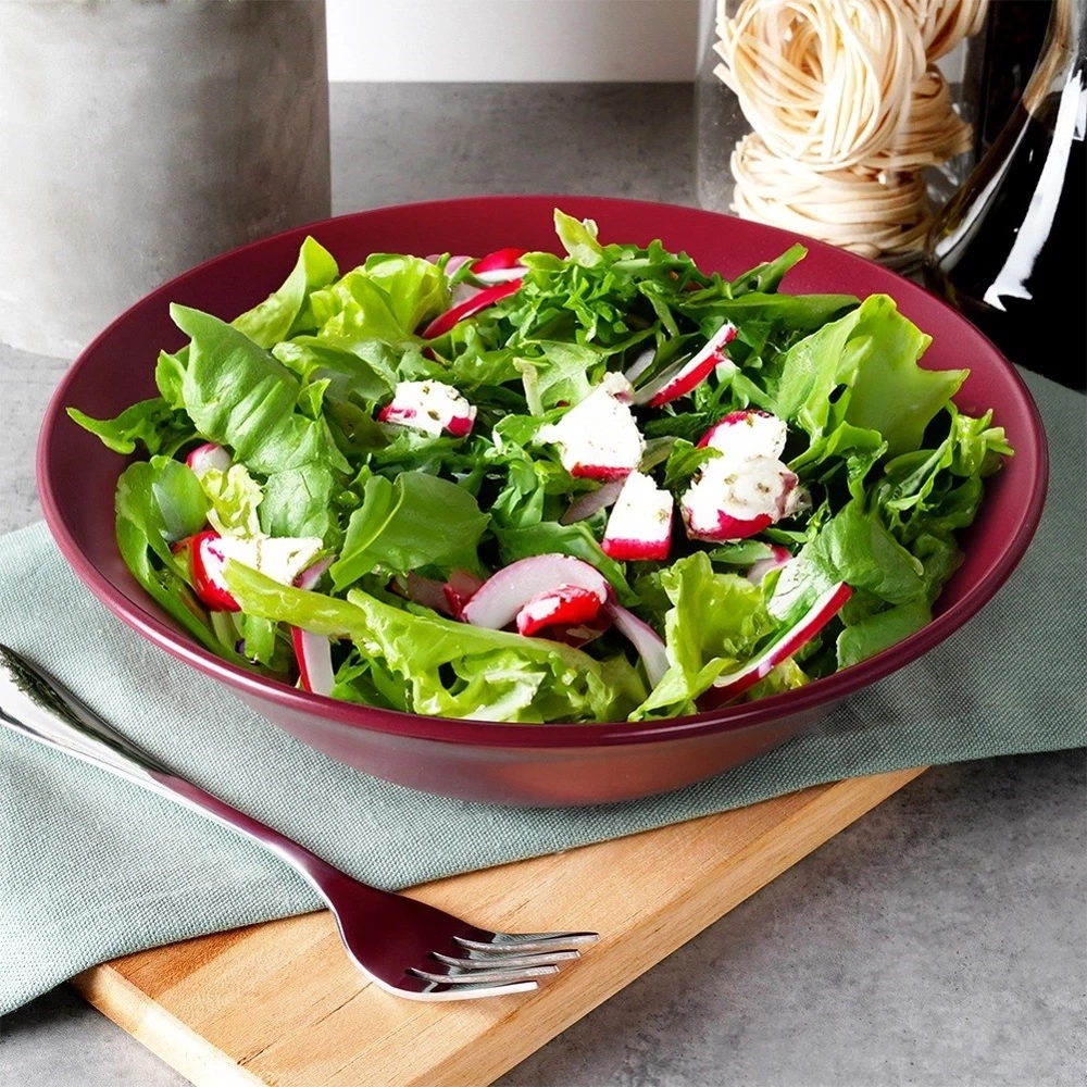 - Wykonana z kamionki - Wykonana z najwyższej jakości kamionki w kolorze bordowym. Odpowiednio użytkowana posłuży długie lata. Miska prezentuje się efektownie na każdym stole.
