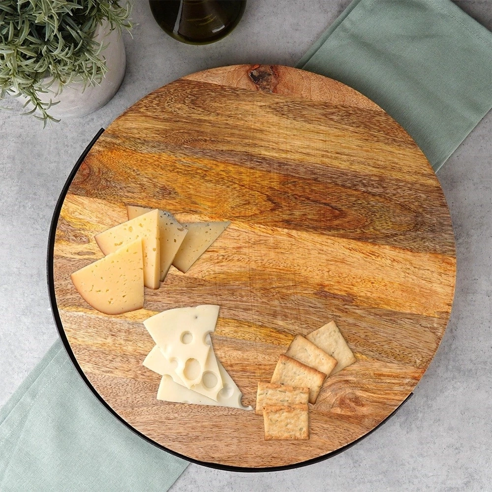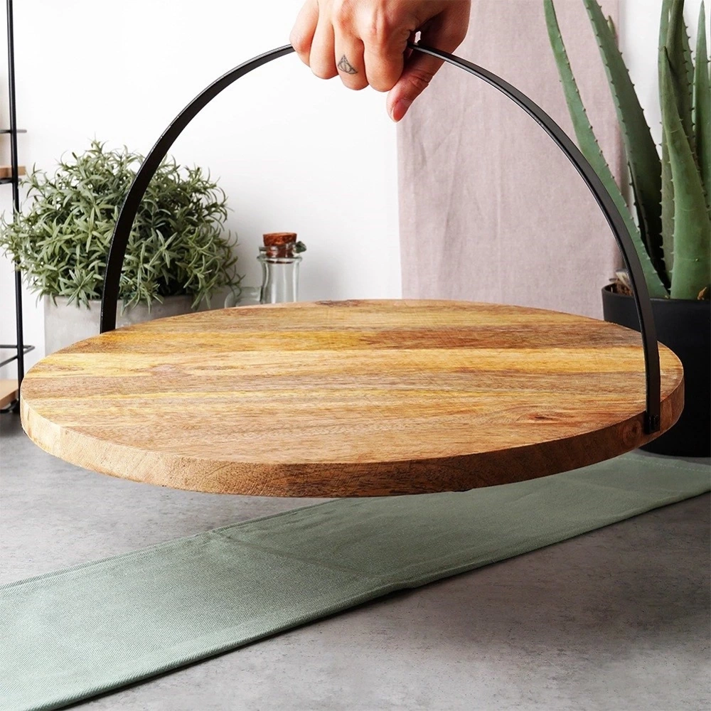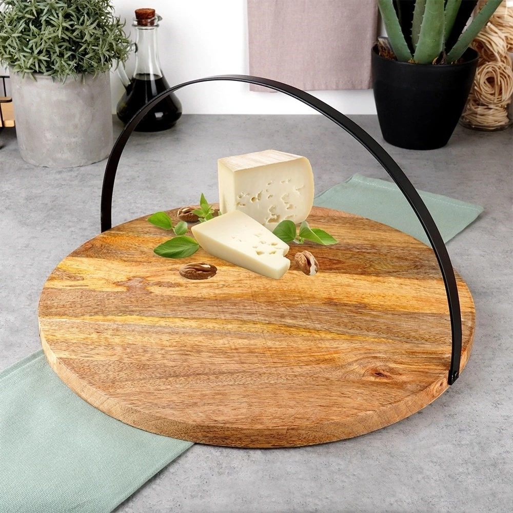 - Deska do serwowania dań wykonana z drewna mangowca. Posiada metalowy uchwyt składany na płasko. Świetnie prezentuje się na stole.