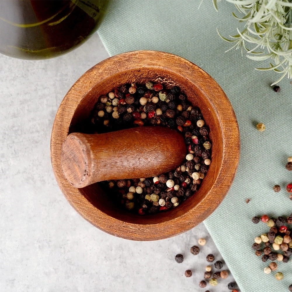 - Drewniany moździerz do rozdrabniania przypraw, ziół, orzechów. Idealny do przygotowywania pesto. Wyjątkowo odporny, odpowiednio użytkowany posłuży przez wiele lat.