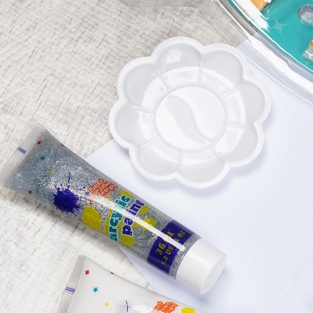 - W zestawie paleta do mieszania - Dołączona paleta ułatwia mieszanie kolorów, dzięki czemu można uzyskać niestandardowe odcienie i eksperymentować z różnorodnymi efektami artystycznymi.