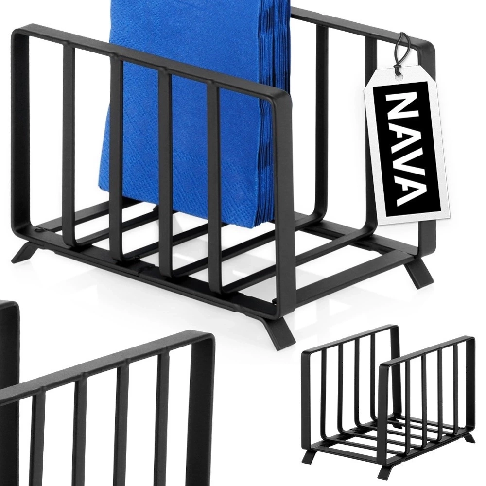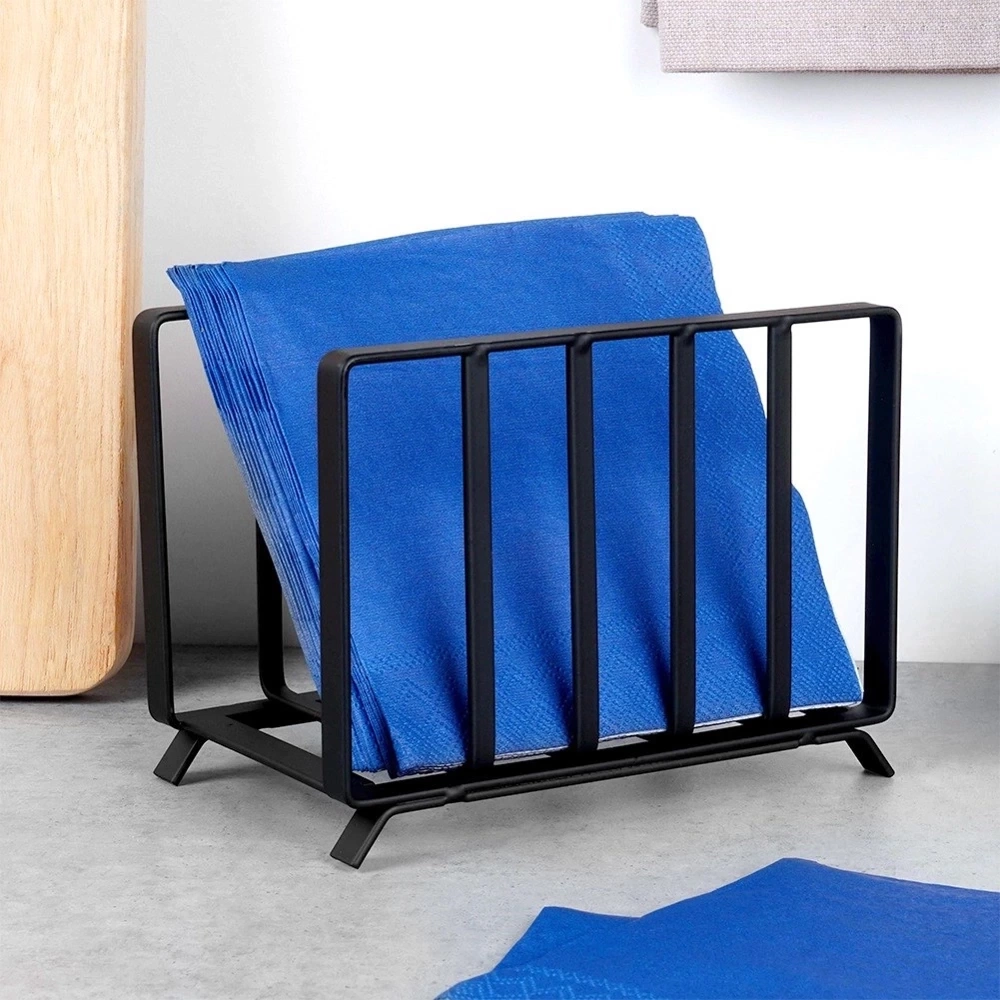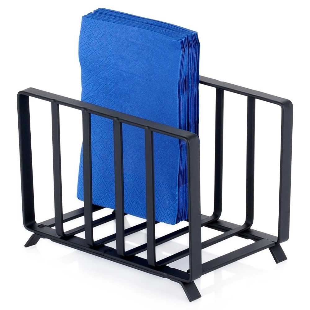 - Metalowy stojak na serwetki, pomieści dużą ilość serwetek. Dzięki niemu serwetki będą zawsze na swoim miejscu. Prezentuje się bardzo elegancko, w całości utrzymany w modnym, czarnym kolorze.
