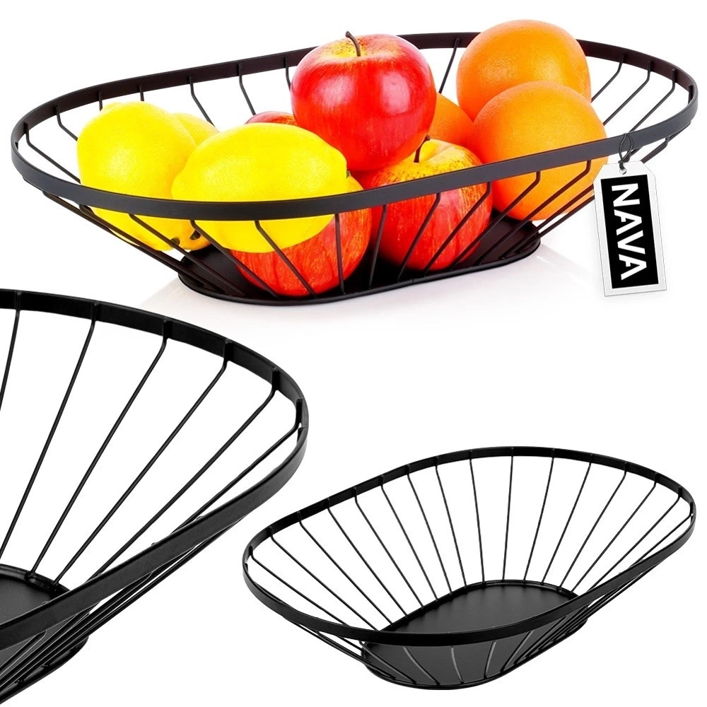 - Owalny koszyk na owoce i warzywa. Wykonany z metalu w kolorze czarnym. Znajdzie zastosowanie w każdej kuchni. Wykonany w industrialnym stylu typu loft.