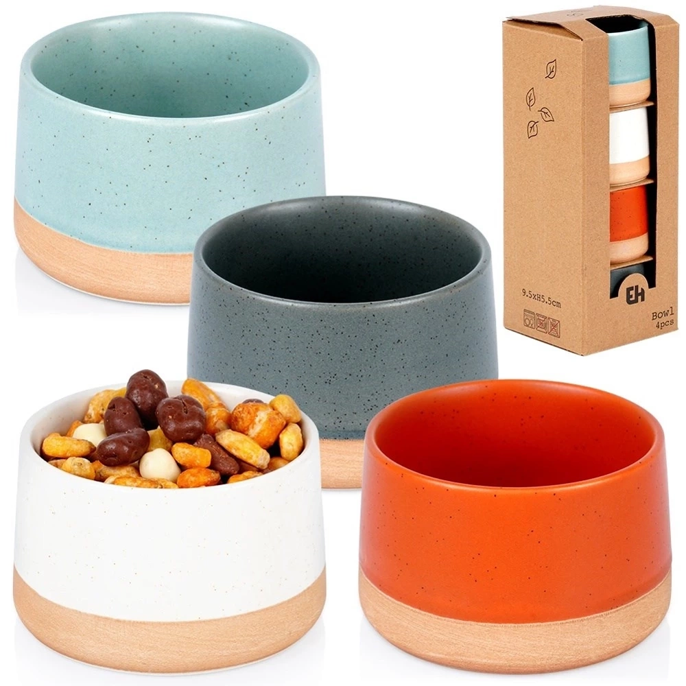 - Zestaw czterech małych miseczek o uniwersalnym zastosowaniu. Wykonane z gresu w czterech kolorach. Idealne na dipy oraz przekąski. Nadają się do zmywarki.
