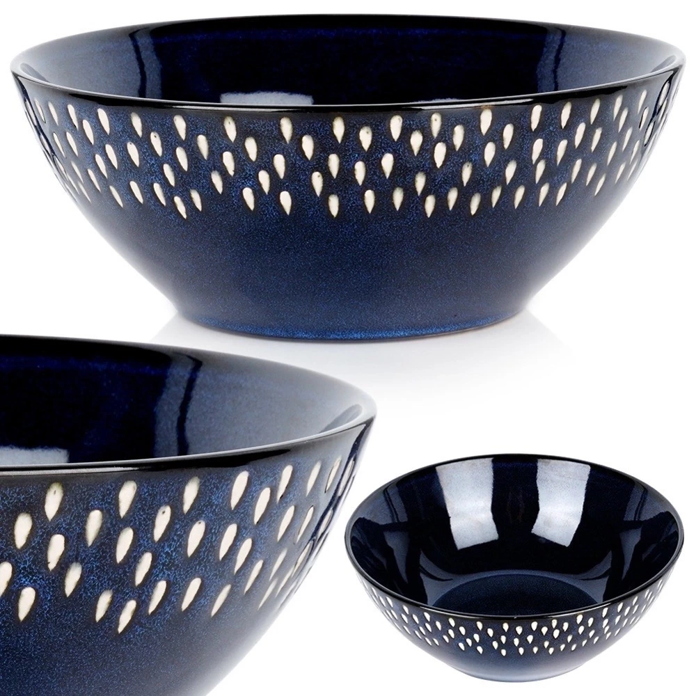 - Miska o pojemności 1,1 l i uniwersalnym zastosowaniu. Wykonana z ceramiki gresowej w granatowym kolorze. Idealna do serwowania sałatek i przekąsek.
