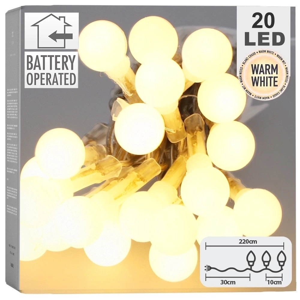 - Ciepła barwa światła - Lampki posiadają 20 LED o ciepłej, białej barwie. Odległość między diodami LED wynosi 10 cm.