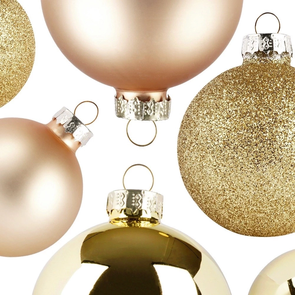 - Zestaw 34 szt. bombek na choinkę - Zestaw 34 bombek w kolorze złotym, które dodadzą blasku każdej choince i stworzą magiczną atmosferę w domu. W zestawie znajdują się bombki o średnicy 4, 5 i 6 cm w kolorze złotym, w wersji błyszczącej i matowej.