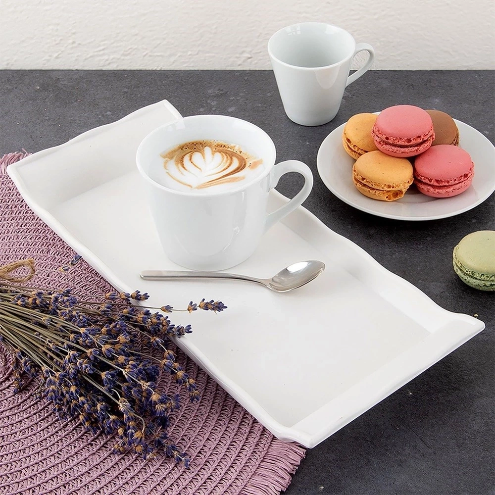 - Taca do serwowania w prostokątnym kształcie - Taca, która ułatwi serwowanie kawy, herbaty, deserów i przekąsek, idealna zarówno do domowego użytku, jak i podczas spotkań z bliskimi. Dzięki niej z łatwością przeniesiesz również kawę, herbatę, domowe ciasto czy drobny deser. Taca jest niezwykle funkcjonalna i ma wymiary całkowite: 29,5 x 13 x 3 cm.