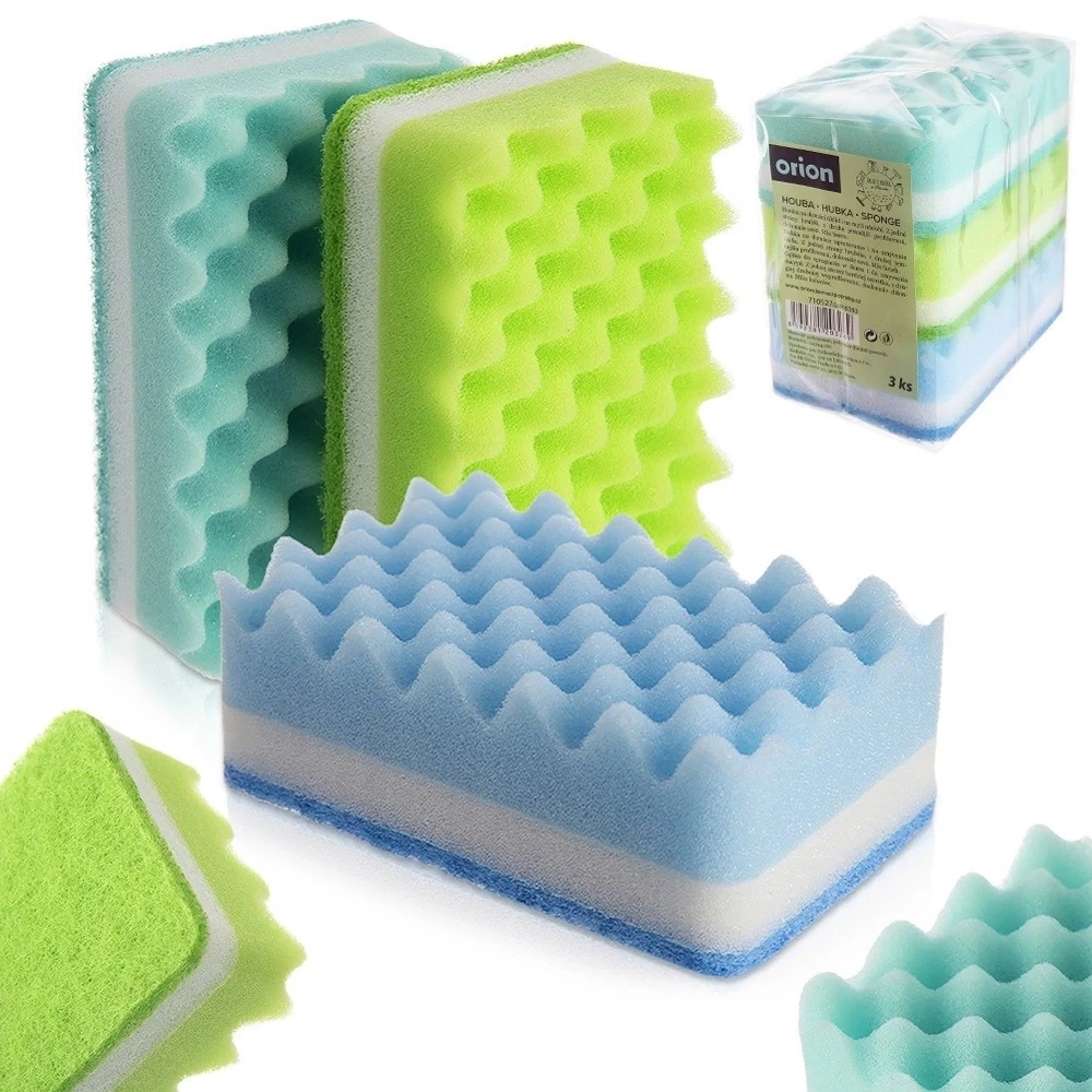 Zestaw trzech gąbek kuchennych, które pozwolą na czyszczenie naczyń i powierzchni kuchennych bez rysowania powierzchni. Wysoka absorpcja umożliwia ekonomiczne użycie detergentów, a trwałe materiały zapewniają długotrwałe użytkowanie. Oryginalny produkt czeskiej marki Orion. Wyprodukowano zgodnie z europejskimi standardami.