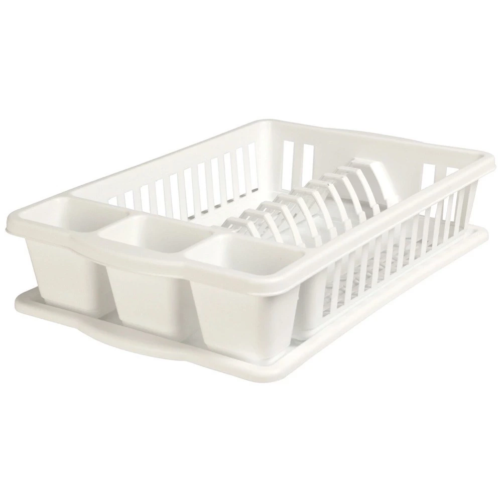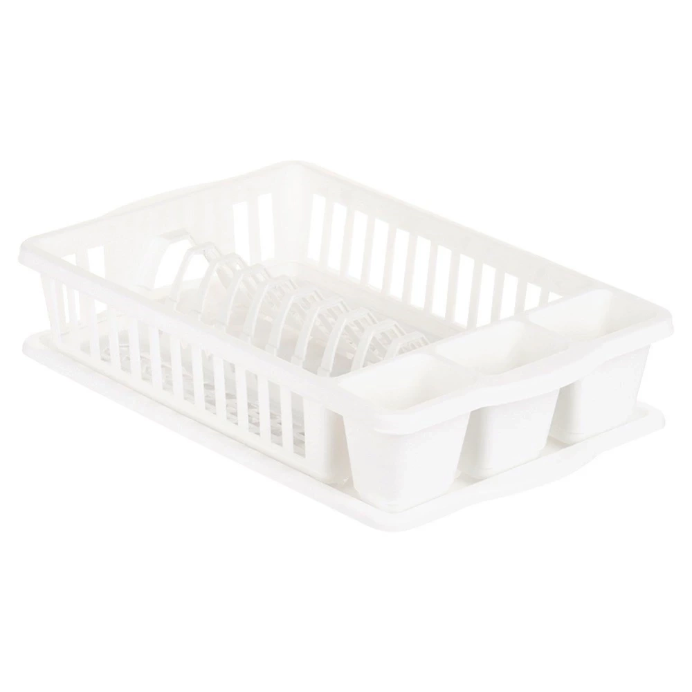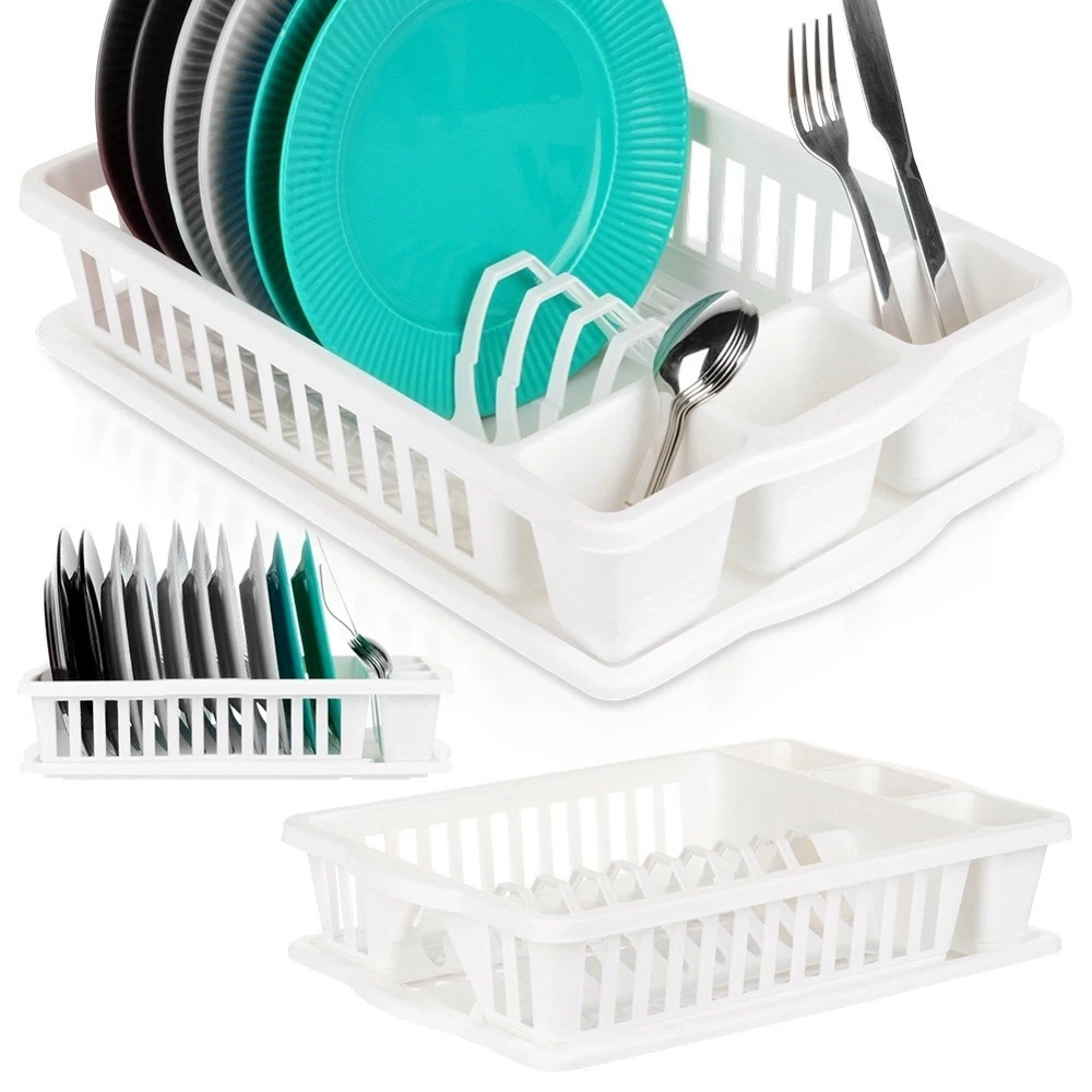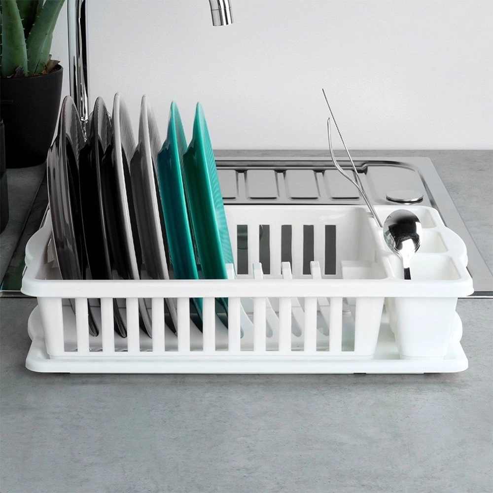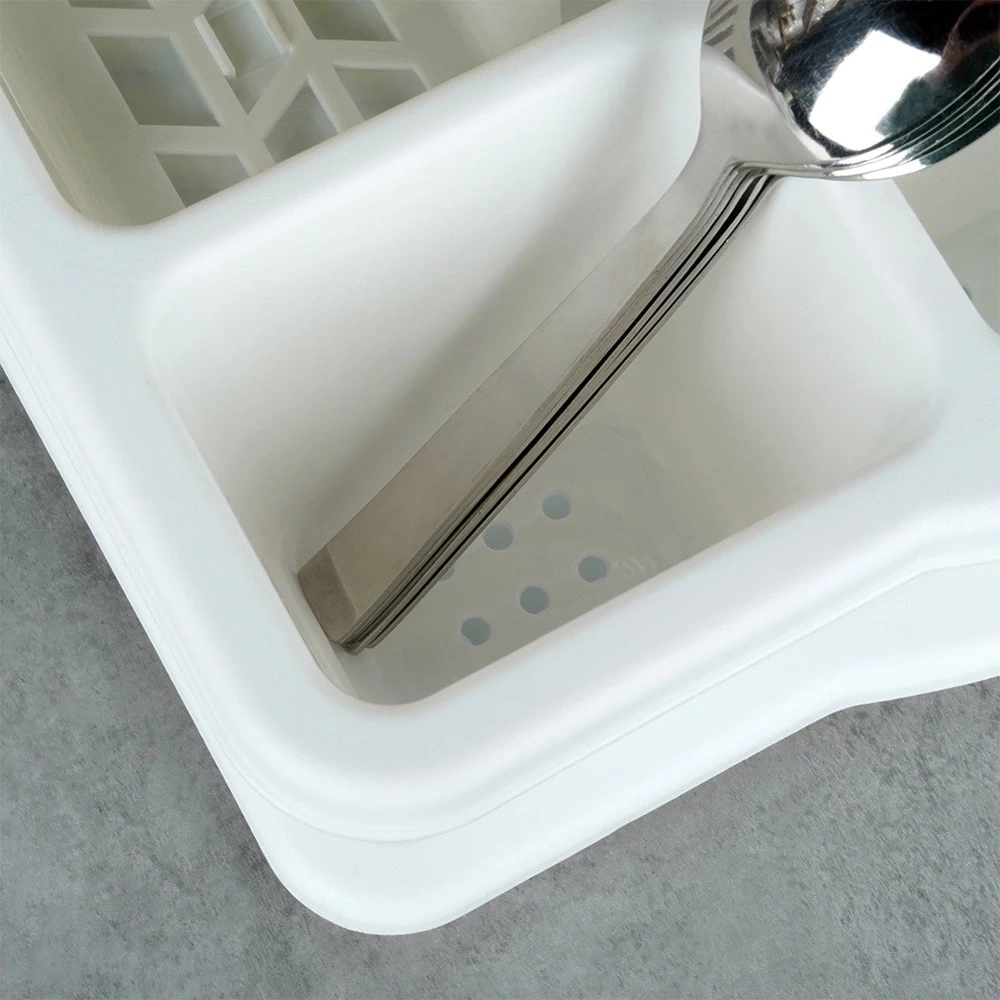 - Suszarka do naczyń w kolorze białym. Posiada miejsce na talerze oraz trzy oddzielne miejsca do odkładania sztućców lub przyborów. Wyjmowana taca zapewni łatwe czyszczenie.