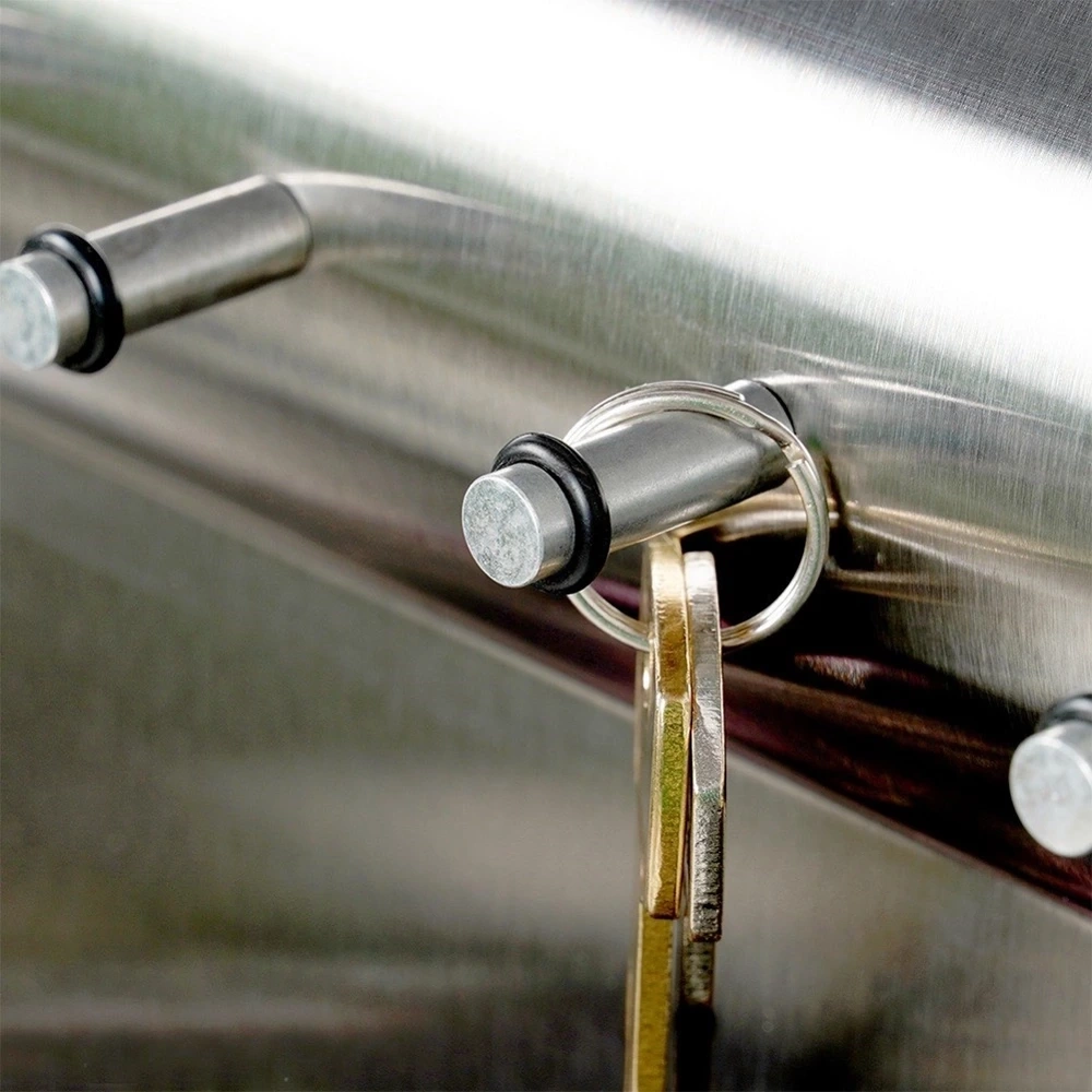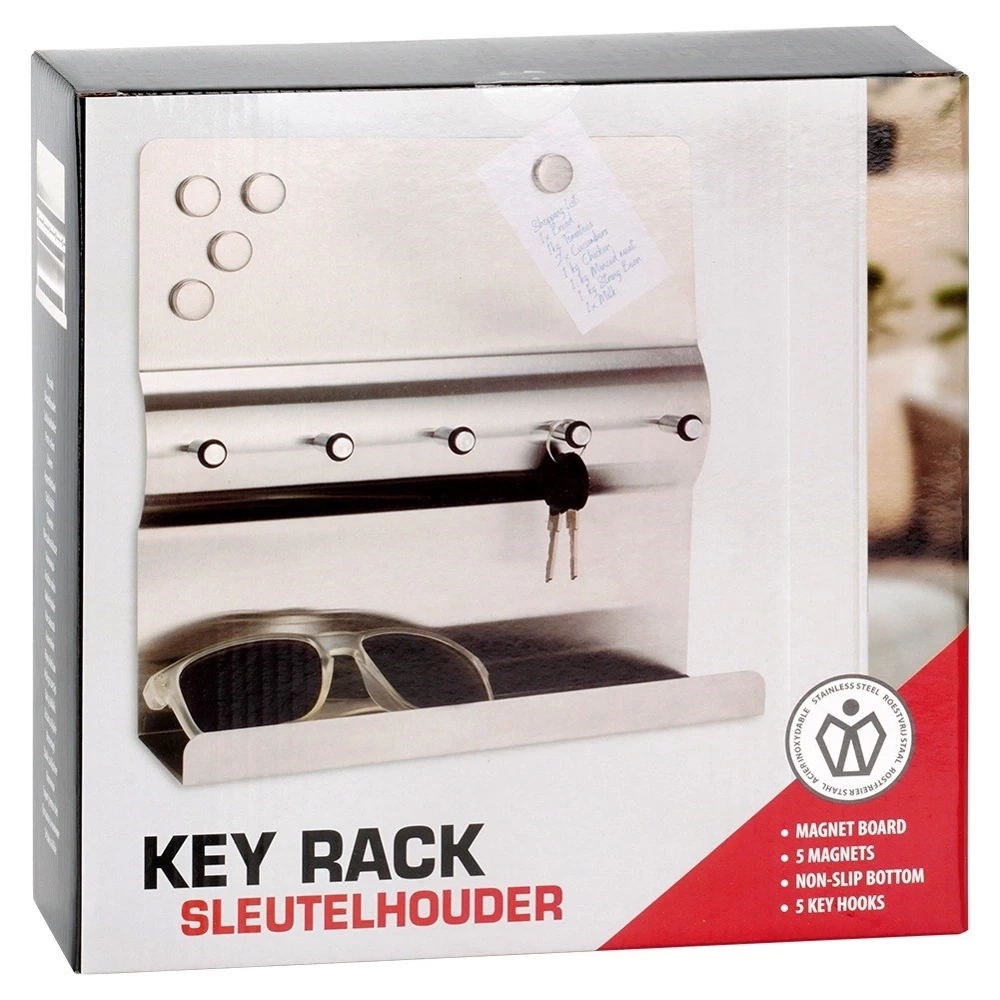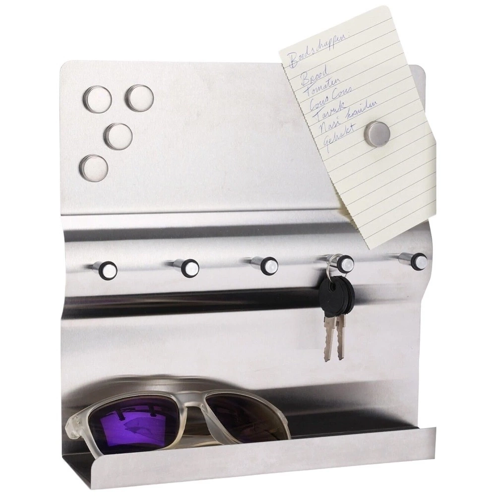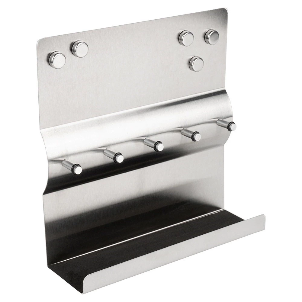 - Funkcjonalny i stylowy wieszak, który pomoże uporządkować klucze i drobne przedmioty. Wykonany ze stali nierdzewnej. Posiada praktyczną półkę i pięć magnesów w zestawie.