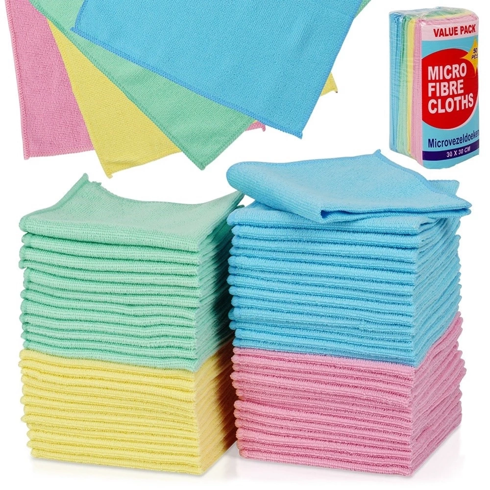 - Zestaw 50 szt. ścierek kuchennych z mikrofibry. Bardzo chłonne, do czyszczenia i polerowania bez użycia środków chemicznych. Przydatne w każdym domu.