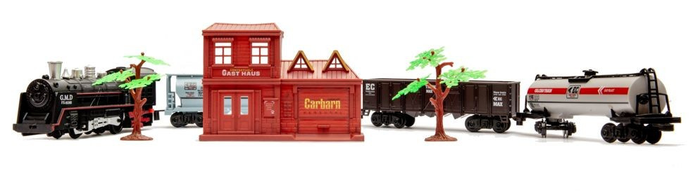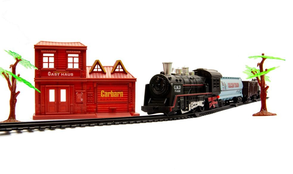 Zabawa kolejką to dla dziecka znakomita okazja do pobudzenia wyobraźni i zdolności manualnych, a dla rodziców możliwość aktywnego spędzania czasu z dzieckiem. Zestaw składa się z 14 odcinków torów, które bardzo łatwo się ze sobą łączą; lokomotywy, która w trakcie zabawy imituje odgłosy jadącego pociągu; 3 wagoników; budynku - zajazdu oraz 2 drzew, aby całość stanowiła kompletny pakiet gotowy do zabawy. Lokomotywa wyposażona jest w światło, które wskazuje kierunek jazdy. Zestaw umożliwia złożenie torów w różnych kombinacjach: zarówno w kształcie okręgu jak i elipsy. Niepowtarzalne emocje towarzyszące składaniu poszczególnych elementów zestawu to tylko wstęp do prawdziwej rodzinnej zabawy. Dzięki powyższym cechom zestaw zapewni obdarowanemu wiele godzin cudownej i kreatywnej zabawy! Produkt zapakowany jest w kartonowe pudełko, które świetnie nadaje się na prezent.