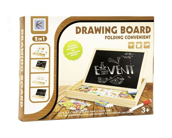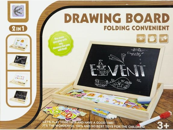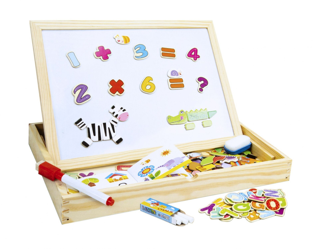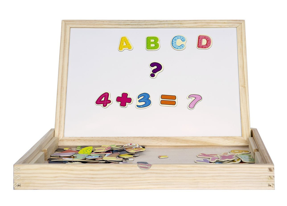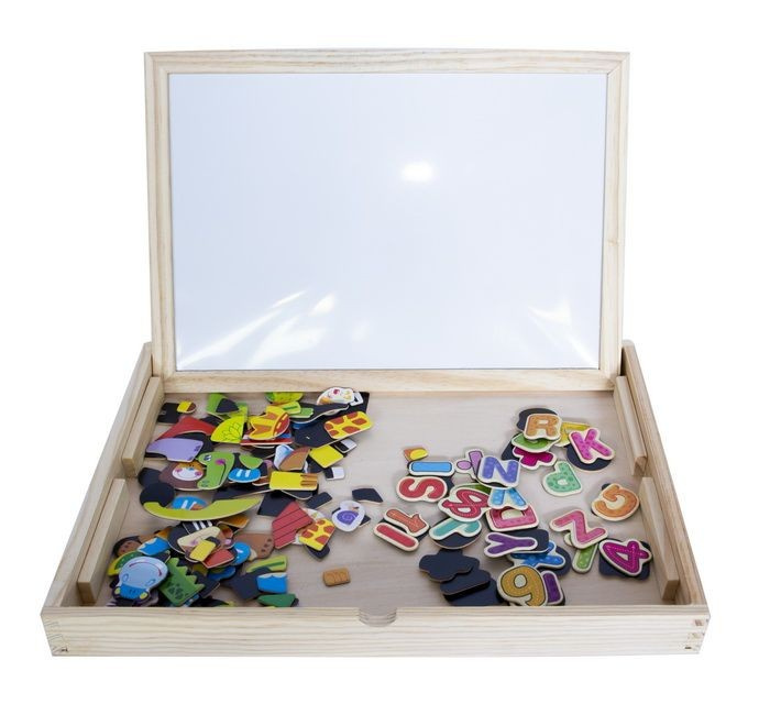 - dwustronna tablica wraz z drewnianą skrzyneczką do przechowywania m.in. magnesów