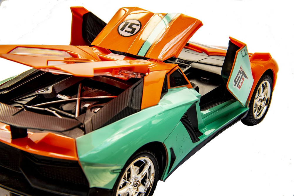 Samochód sportowy ze światłami LED zdalnie sterowany w kolorze pomarańczowym