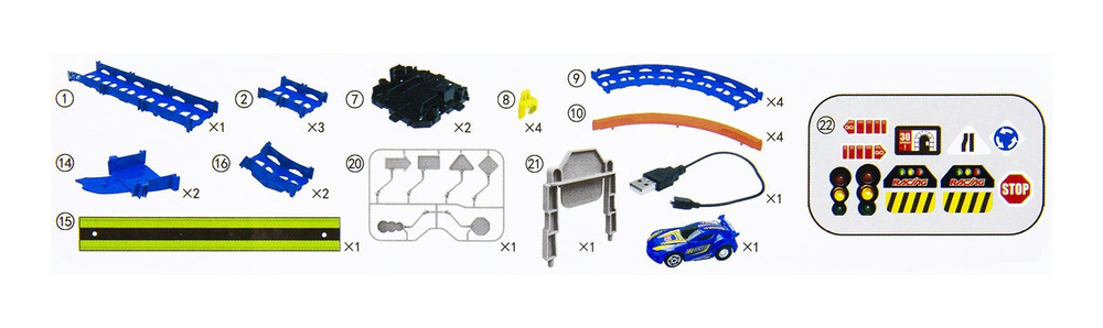Świecący tor samochodowy to idealny pomysł na na prezent dla najmłodszych miłośników wyścigów samochodowych. Produkt jest łatwy w złożeniu i zapewni długie godziny wspaniałej zabawy. Zestaw składa się z toru liczącego 27 elementów oraz 1 auta (7 cm) ze światłami. Dodatkową atrakcją są fluorescencyjne elementy, które są podświetlane przez lampki samochodu jeżdżącego po torze.