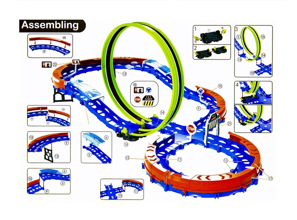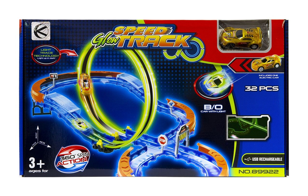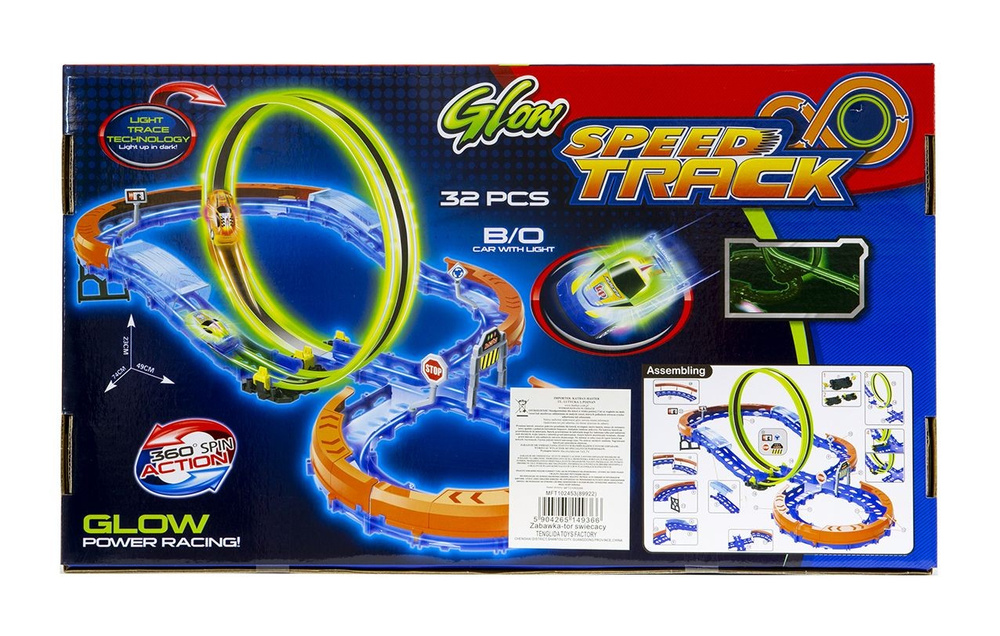 Świecący tor samochodowy to idealny pomysł na na prezent dla najmłodszych miłośników wyścigów samochodowych. Produkt jest łatwy w złożeniu i zapewni długie godziny wspaniałej zabawy. Zestaw składa się z toru liczącego 32 elementy oraz 1 auta ze światłami. Dodatkową atrakcją są fluorescencyjne elementy, które są podświetlane przez lampki samochodu jeżdżącego po torze.