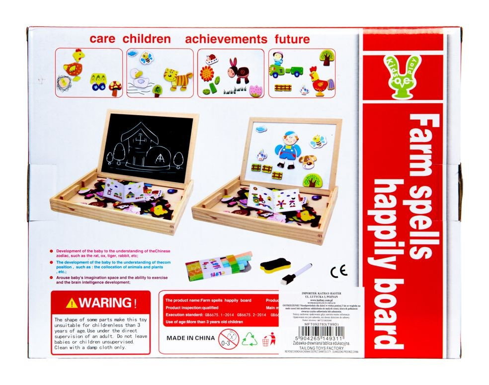 - dwustronna tablica wraz z drewnianą skrzyneczką do przechowywania m.in. magnesów