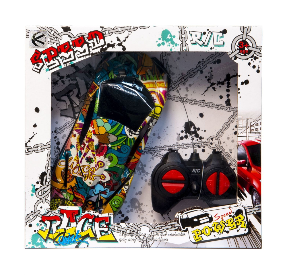 Poczuj się jak prawdziwy kierowca rajdowy i zasiądź za kierownicą sportowego auta. Jest to prawdziwa gratka dla fanów szybkich samochodów. Lekkie, opływowe nadwozie pozwala na osiąganie naprawdę dużych prędkości. Samochód dobrze trzyma się drogi, co zapewnia bezpieczną jazdę. W trakcie jazdy zapalają się przednie światła, dzięki czemu można bezpiecznie przemieszczać się autem również w ciemności. Auto sterowane jest radiem i wykonane w skali 1:22. Żywa kolorystyka z motywami grafitti, wykonanie z dbałością o detale i realistyczny wygląd sprawiają, że pojazd przyciąga uwagę.