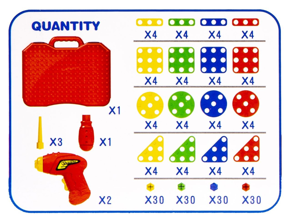 Ten produkt to marzenie każdego małego majsterkowicza! W zestawie znajduje się wiele kolorowych elementów o różnych kształtach, które pomogą w rozwijaniu wyobraźni oraz kreatywności dziecka. W zestawie znajduje się 190 elementów w tym wkrętarka, która posiada z dwa różne tryby. Elementy mogą zostać przykręcone zarówno przy pomocy dołączonych narzędzi, jak i własnoręcznie, co rozwija zdolności manualne dziecka.