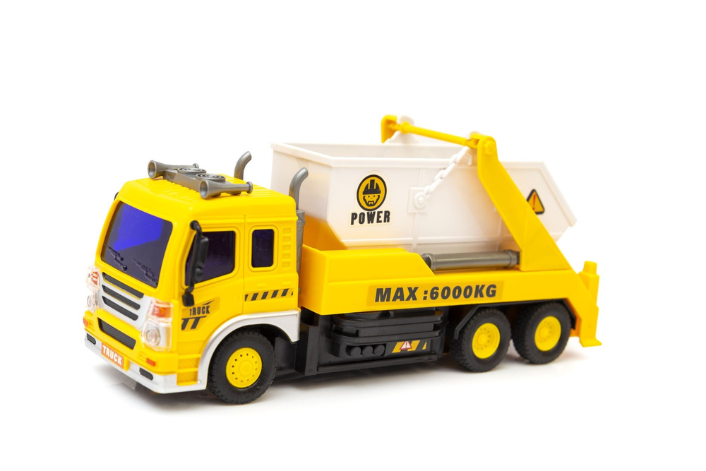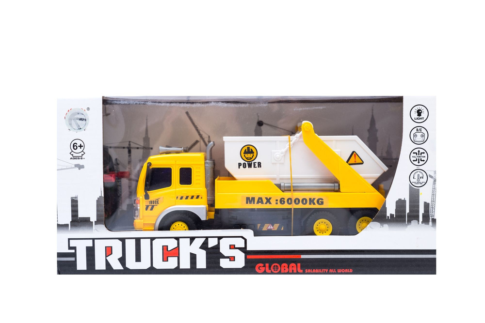 Zdalnie sterowany pojazd budowlany z efektami świetlnymi - zabawka jeździ we wszystkich kierunkach, a do jej sterowania służy prosty w obsłudze pilot. Wyraziste kolory pojazdu przyciągają wzrok, a przednie światła urozmaicą zabawę dziecka.