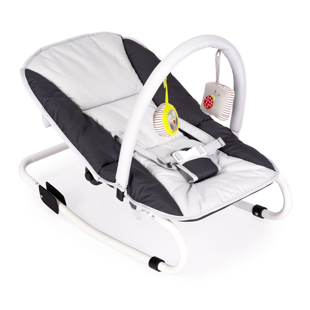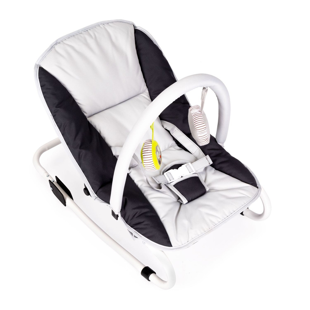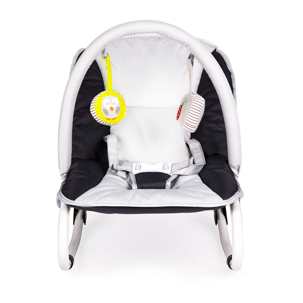 Leżaczek bujaczek składana kołyska z zabawkami biało-grafitowy