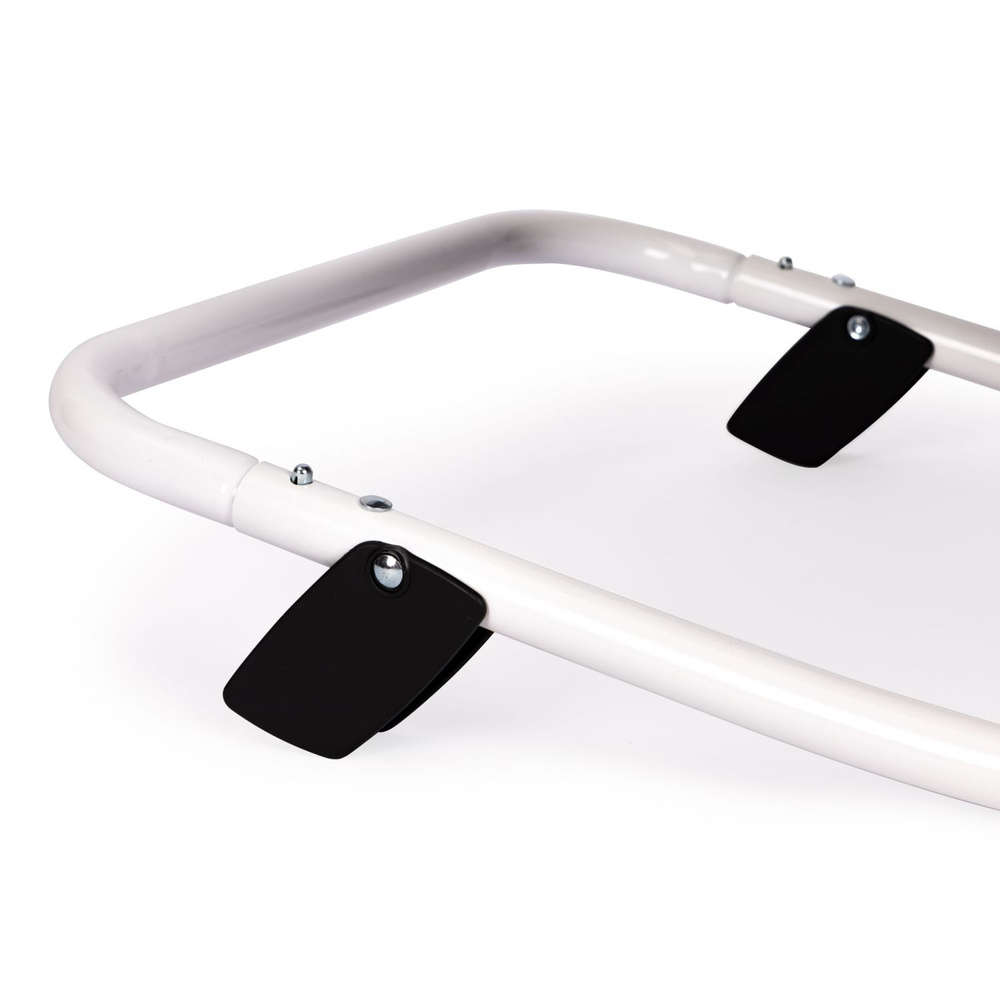 Leżaczek wykonany został z miękkiej i przyjemnej w dotyku tkaniny, a pałąk obłożony pianką i warstwą materiału. Poszycie leżaczka można z łatwością zdjąć i prać ręcznie co umożliwia właściwe utrzymanie higieny.