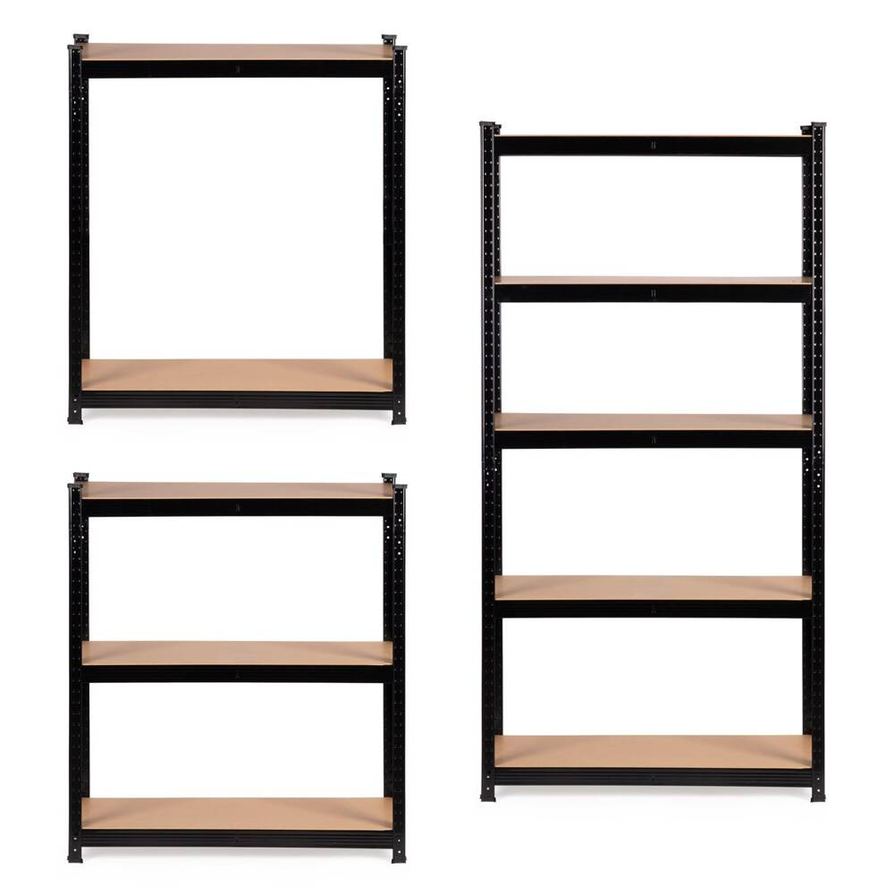Regał magazynowy metalowy czarny 2w1, 5 jasnych półek 180x90x40 cm