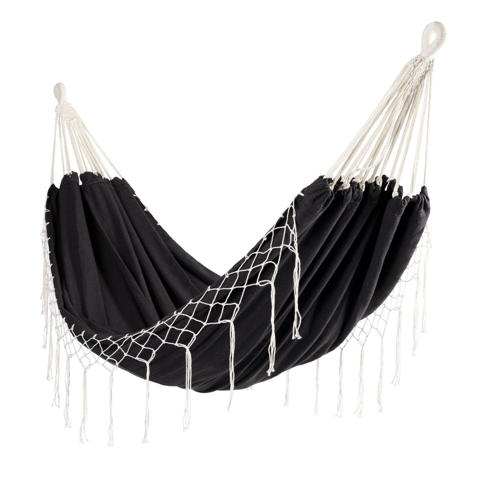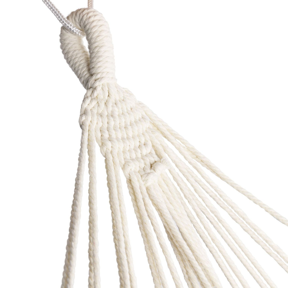 Dodatkowo ozdobne frędzle, które zostały umieszczone po obu stronach hamaka nadają mu niepowtarzalnego charakteru. Wykonany został z przewiewnego, mocnego materiału, zapewniającego wytrzymałość i odporność na przetarcia.