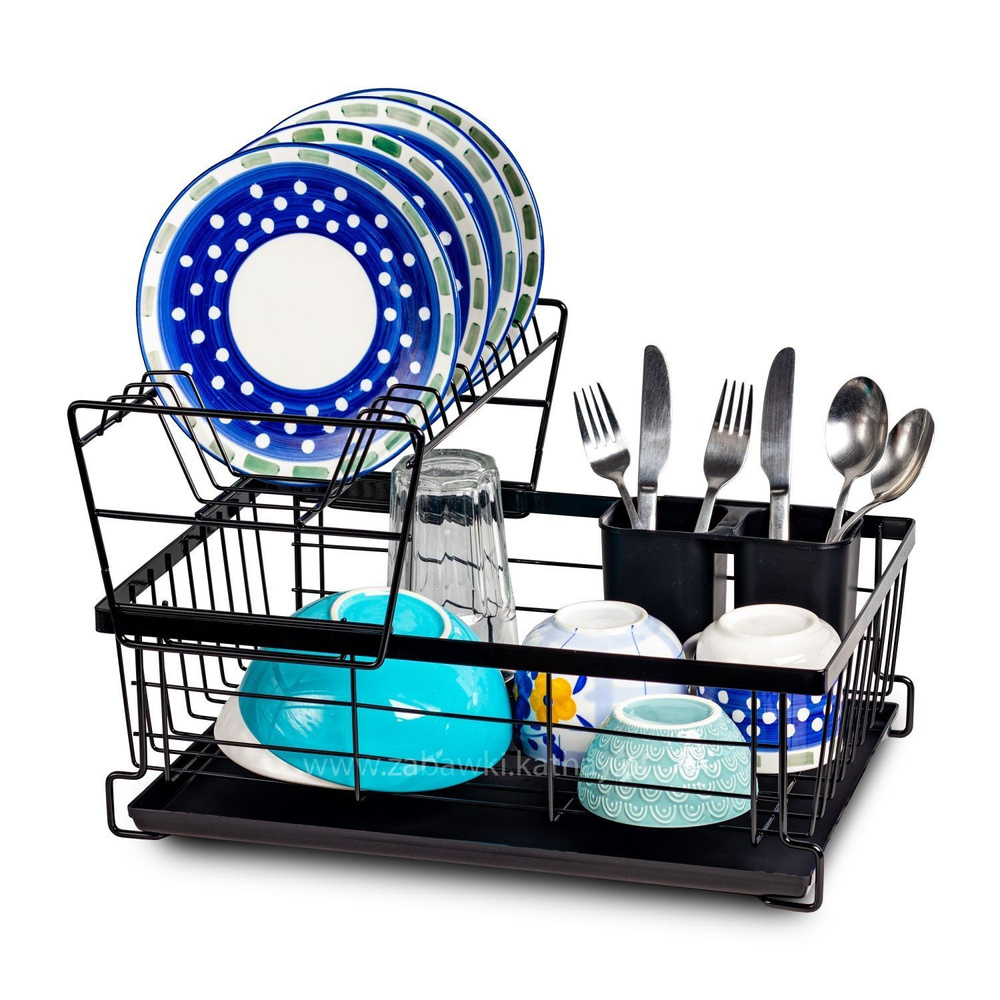 Praktyczna suszarka do naczyń jest niezbędnym elementem wyposażenia w każdej kuchni. Suszarka jest bardzo pojemna, dzięki dwupoziomowej konstrukcji oraz dodatkowemu pojemnikowi na sztućce.