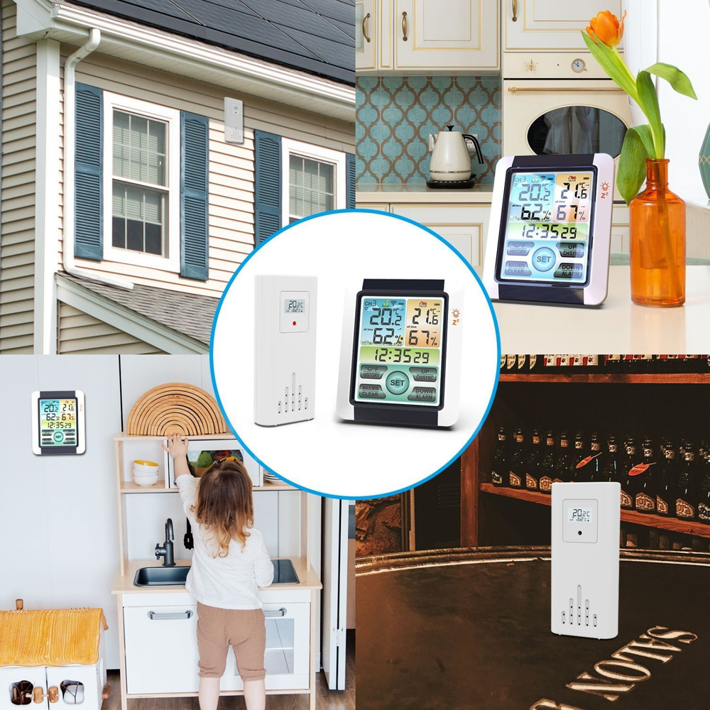 Bezprzewodowa stacja pogodowa to wielofunkcyjne urządzenie przydatne w każdym domu. Stacja wykonuje pomiar takich wartości jak: temperatura czy wilgotność, a dodatkowo posiada funkcję zegar i alarm. Urządzenie posiada w zestawie czujnik zewnętrzny z zasięgiem aż 100 metrów, dzięki któremu możliwy jest pomiar zarówno w pomieszczeniu, jak i na zewnątrz budynku. Podane wartości są aktualizowane na bieżąco.