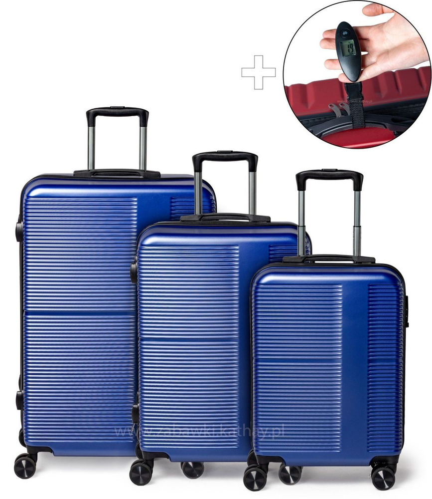 Zestaw podróżnych walizek XXL granat 3w1 ABS+PC plus waga bagażowa gratis