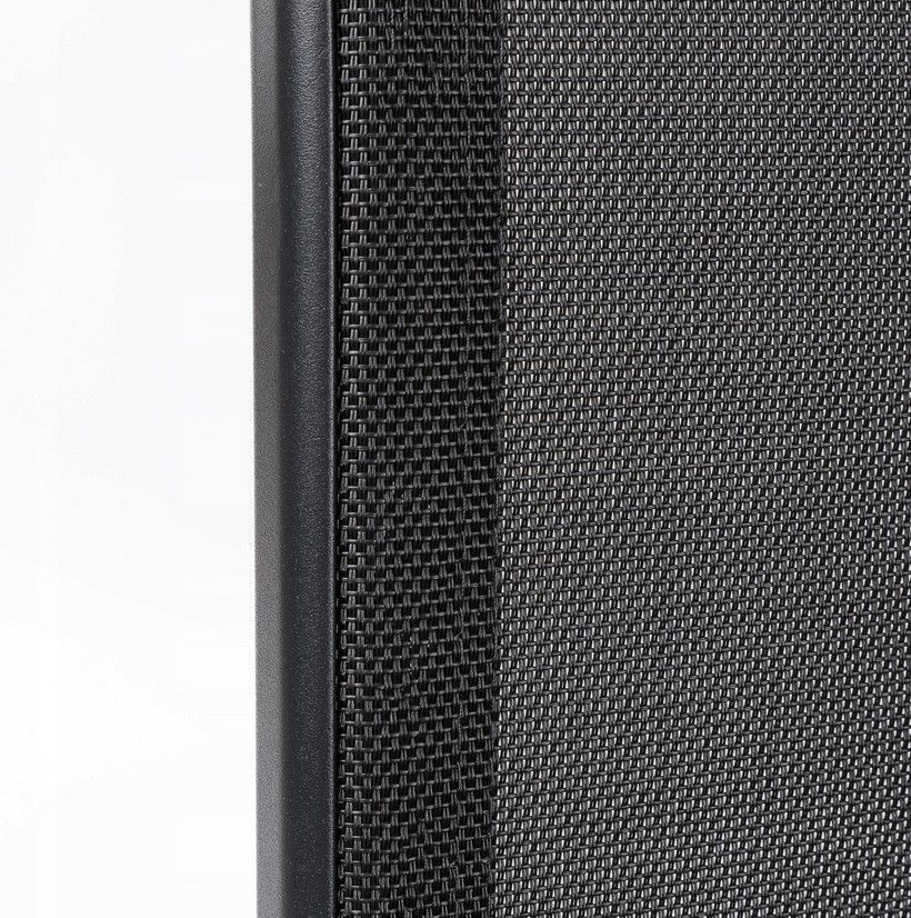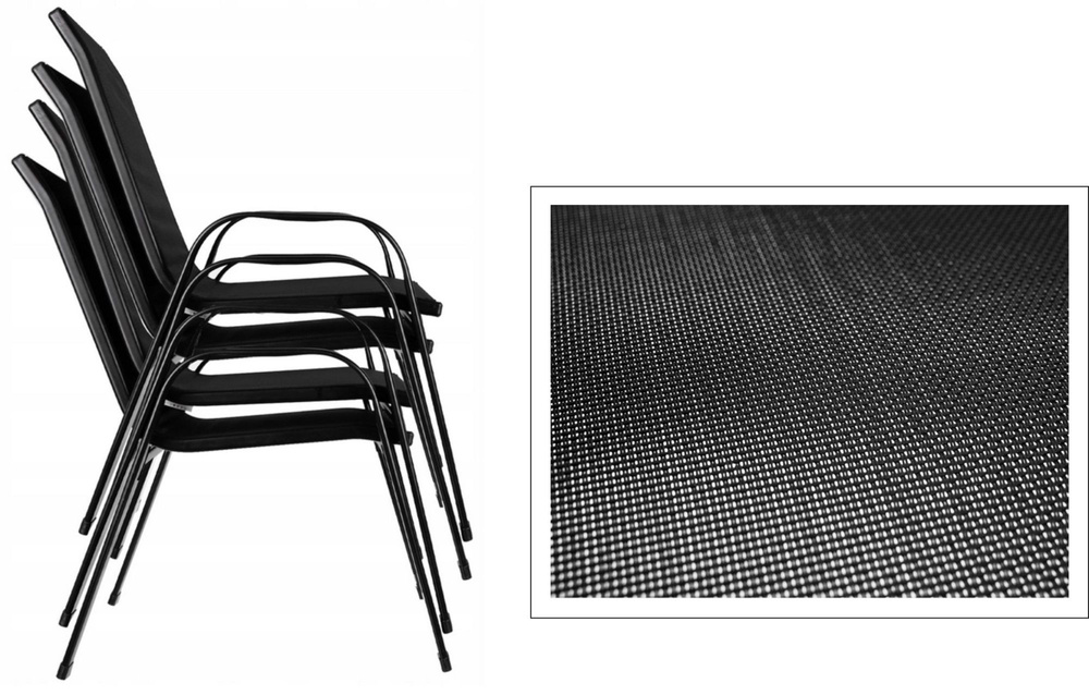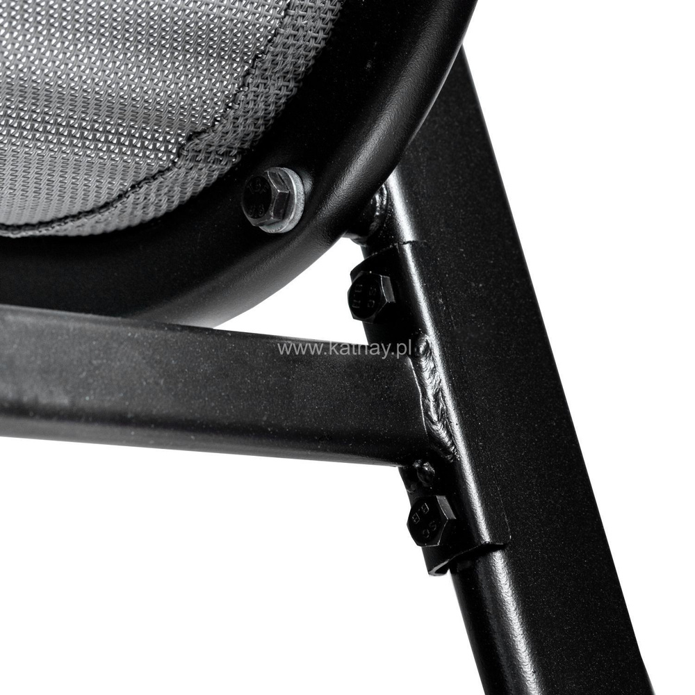 Nowoczesne jednocześnie wygodne krzesła z metalową ramą, malowaną proszkowo na kolor czarny. Siedzisko wykonane zostało z mocnego i przewiewnego materiału, odpornego na odkształcenia. Dwa podłokietniki zwiększają komfort użytkowania.