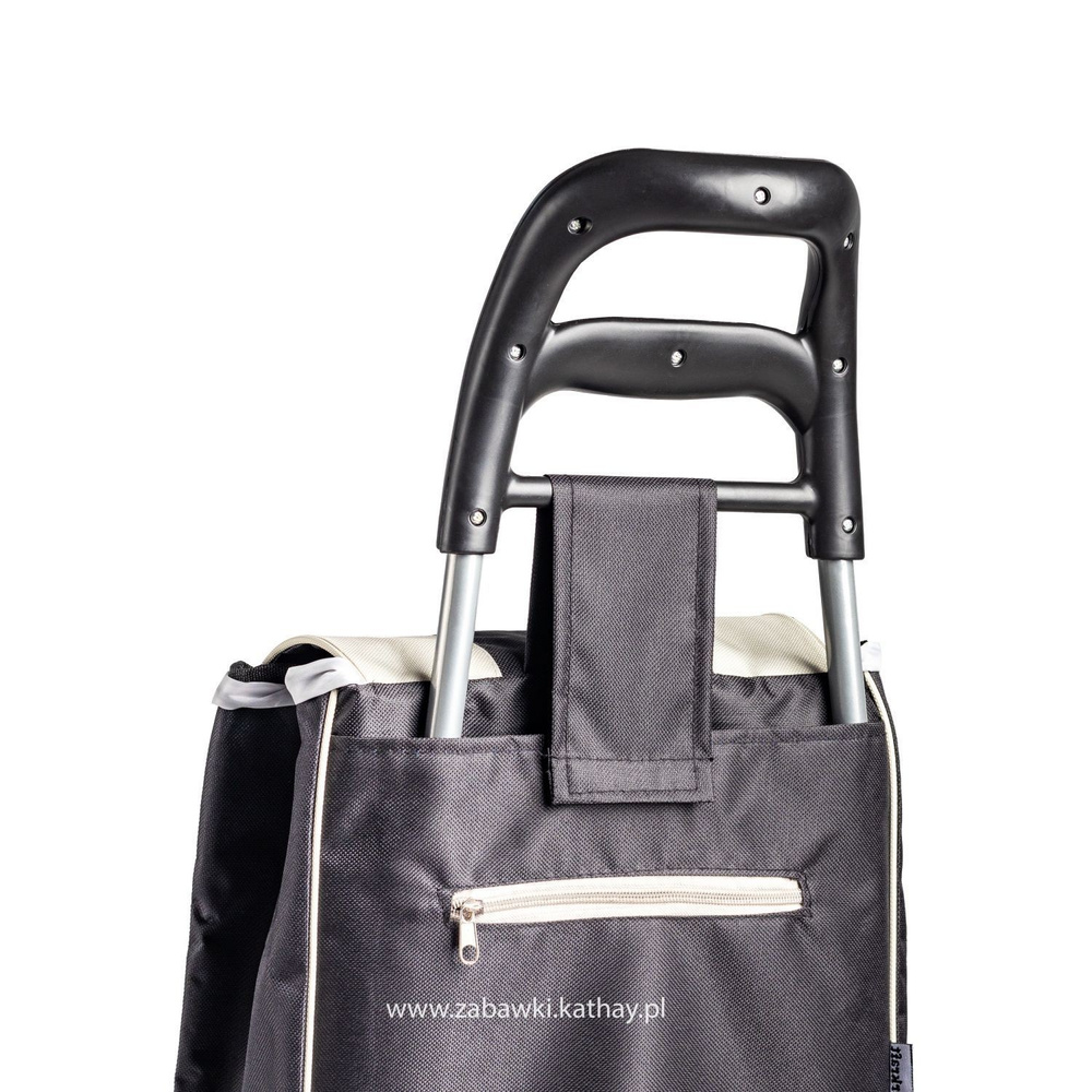 Duże koła i stabilny uchwyt sprawią, że robienie zakupów będzie bardziej komfortowe. Koła wystające poza linię stelaża pozwalają na wygodne podjeżdżanie na krawężniki lub schody. Z tyłu torby znajduje się praktyczna kieszonka na zamek, w której można schować portfel lub dokumenty.