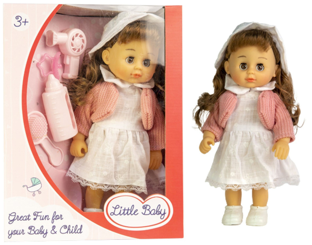 Urocza lalka o wysokości około 30 cm ubrana jest w zwiewną sukienkę oraz twarzowy płaszczyk. Z pewnością będzie się doskonale prezentowała się w ramionach każdej dziewczynki. Wystarczy jedno spojrzenie w jej piękne orzechowe oczy, by otoczyć ją opieką i troską.