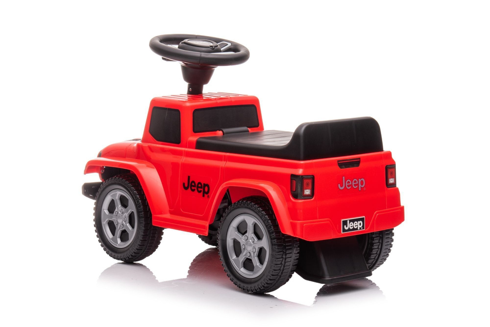 Jeździk dla malucha to gwarancja doskonałej zabawy i możliwość niezwykle łatwego przemieszczania się, szczególnie jeśli jest nim kultowa terenówka marki JEEP, wyprodukowany na amerykańskiej licencji. Dzięki temu jeździk doskonale odwzorowuje szczegóły prawdziwego samochodu. Wygodne siedzisko i skrętne przednie koła to z pewnością atuty tego samochodu. Zabezpieczenie przed wywróceniem się odpychacza zapewnia bezpieczeństwo malucha powodując, że nasze autko staje się być obowiązkowym pierwszym pojazdem każdego dziecka. Dla urozmaicenia zabawy, dziecko widząc na trasie swojego przejazdu przeszkodę, może użyć klaksonu lub posłuchać odgłosu pracującego silnika, zwiastując wszystkim swoją obecność. Dodatkową atrakcją jest schowek, który znajduje się pod siedziskiem, dzięki któremu młody kierowca może zabrać w podróż wszystkie swoje najcenniejsze skarby. Jeździk porusza się do przodu oraz do tyłu.