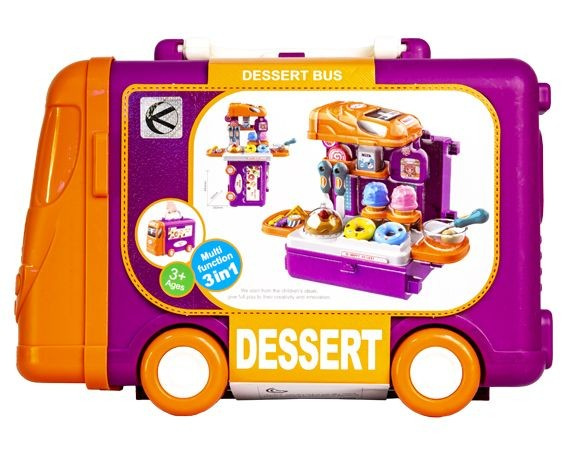 Urocza cukiernia dla dzieci to słodki zestaw zabawek, który skradnie serce niejednego malucha, lubiącego naśladować dorosłych. Zestaw składa się z akcesoriów niezbędnych w czasie zabawy w cukiernika, takich jak: imitacje słodkości - np. pączki czy przybory kuchenne. Dzięki dołączonym przysmakom, dziecko z łatwością urządzi pyszną zabawę dla wszystkich zaprzyjaźnionych misi i lalek. Mini cukiernia ma kształt walizki na kółkach co umożliwia wygodne przeniesienie jej w dowolne miejsce.