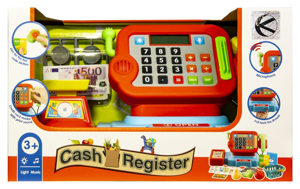 Super zestaw do zabawy w sklep. Kasa sklepowa posiada funkcję kalkulatora, mikrofon oraz czytnik kodów kreskowych. Dodatkowo kasę wyposażono w banknoty, monety i kartę płatniczą. Każda zabawa w sklep nie może obyć się bez kasy sklepowej, pozwól by stała się ona nieodzownym dodatkiem podczas zabawy Twojego dziecka. Kasa posiada funkcję prawdziwego mikrofonu, kalkulatora, a także wyposażona jest w czytnik, który po naciśnięciu przycisku, wydaje charakterystyczny dźwięk, natomiast podczas skanowania, zapala się czerwona lampka imitująca sklepowy skaner. Zestaw jest super sposobem na naukę poprzez zabawę - uczy podstawowych działań matematycznych, takich jak: dodawanie, odejmowanie, mnożenie i dzielenie. Zapakowany w kolorowe opakowanie, idealnie nadaje się na prezent. W trosce o najmłodszych zabawka została wykonana z wysokiej jakości tworzywa. Żywa kolorystyka i estetyczne wykonanie skutecznie zachęcają do zabawy.