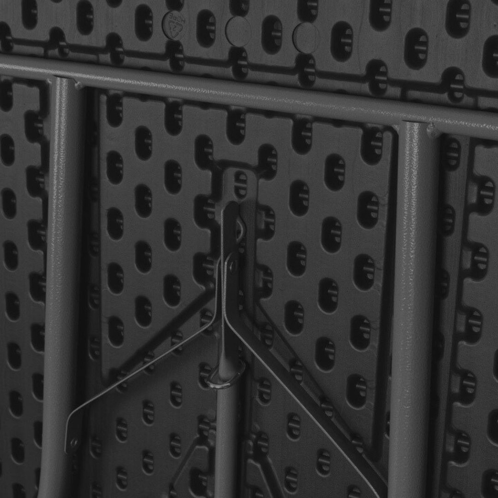 Składany stół ogrodowy jest wyjątkowo praktyczny. Metalowa konstrukcja wykonana została ze stali, natomiast blat wykonany z dobrej jakości tworzywa sztucznego, odpornego na działanie warunków atmosferycznych. Stolik po złożeniu zamienia się w poręczną walizkę z uchwytem, dzięki czemu zajmuje małą przestrzeń i jest łatwy do przeniesienia.