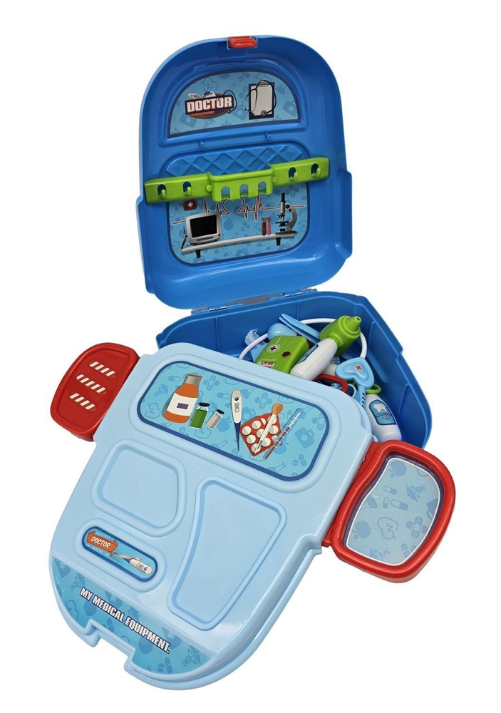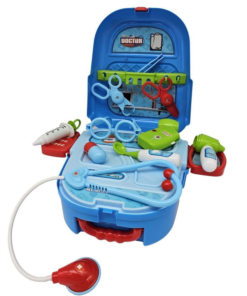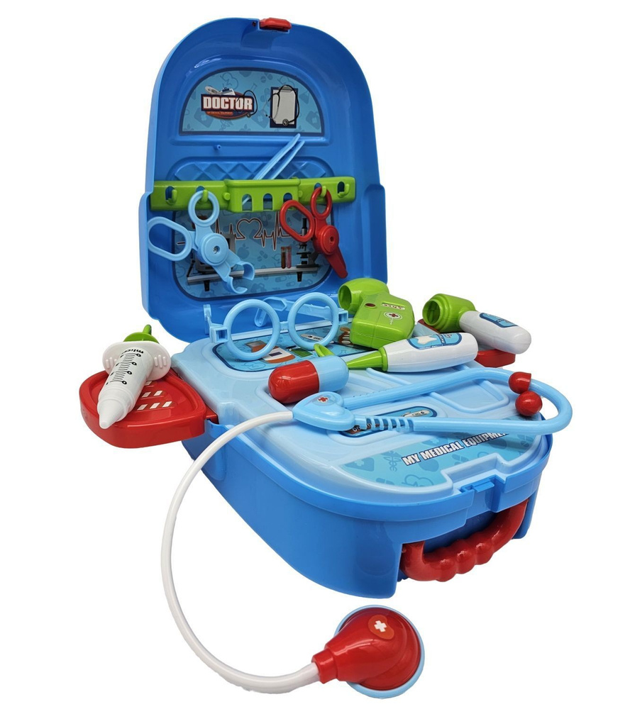 W skład zestawu wchodzą plastikowe przyrządy, które przydadzą się każdemu małemu lekarzowi. Wykonany z wysokiej jakości plastiku, zapewnia długie godziny pełne zabawy. Produkt składa się z 17 elementów m.in. strzykawka, nożyczki, termometr, stetoskop
