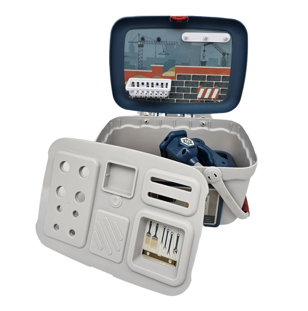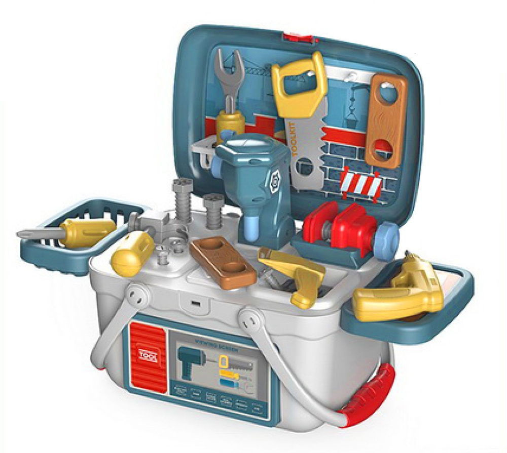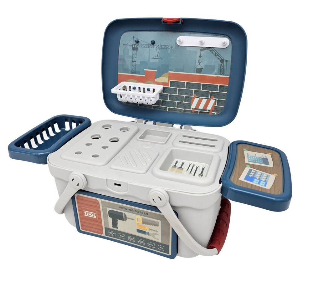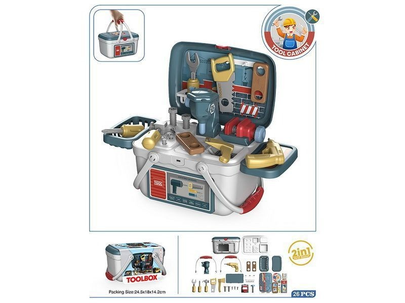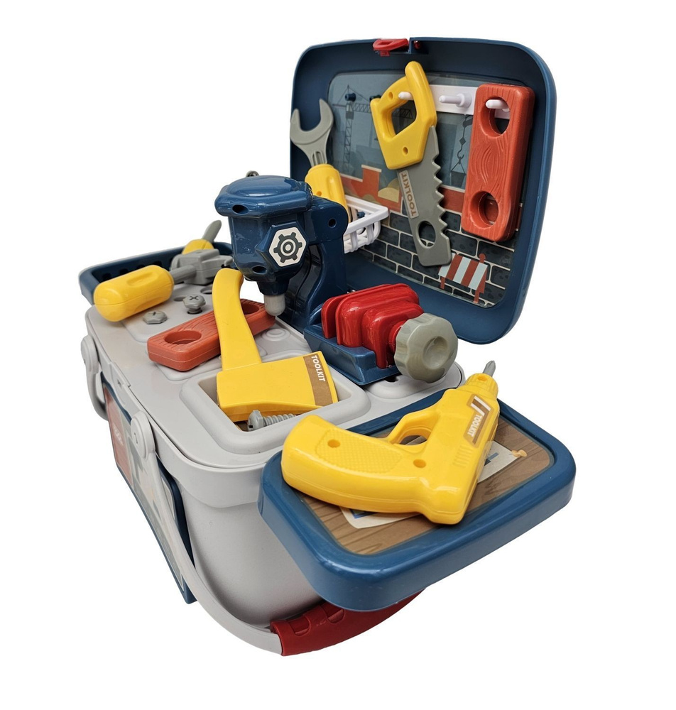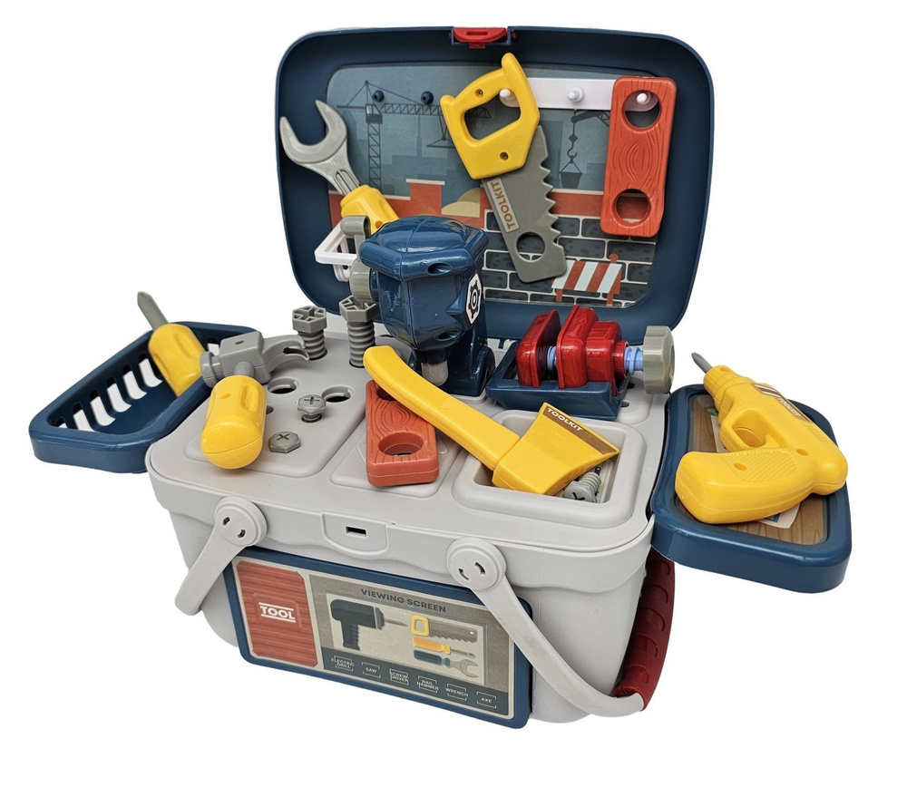 W skład zestawu wchodzą plastikowe narzędzia, będące imitacjami prawdziwych przyrządów każdego majsterkowicza. Charakteryzują się przyjaznymi kształtami i żywą kolorystyką. Wykonany z wysokiej jakości plastiku, zapewnia długie użytkowanie. Dzięki praktycznej skrzyneczce, łatwo utrzymać porządek w dziecięcym pokoju. Dodatkowo, zestaw jest wyposażony w wygodną rączkę, umożliwiającą przenoszenie zabawki w dowolne miejsce. Ten kolorowy zestaw to gwarancja wspaniałej zabawy przez długie godziny.