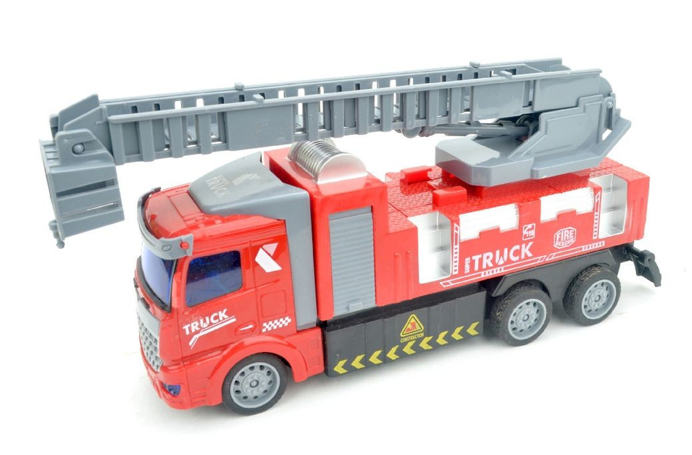 Zdalnie sterowany wóz straży pożarnej z efektami świetlnymi - zabawka jeździ we wszystkich kierunkach, a do jej sterowania służy prosty w obsłudze pilot. Wóz strażacki posiada ruchomą rampę z koszem. Wykonanie z wysokiej jakości materiałów z dbałością o detale sprawia, że pojazd będzie długo służył małemu strażakowi.