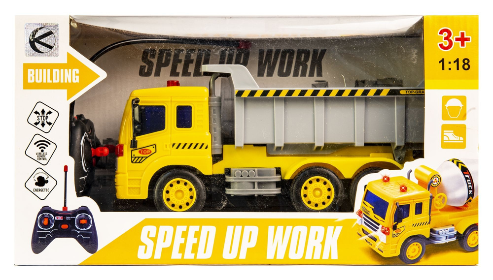 Zdalnie sterowany pojazd budowlany z efektami świetlnymi - zabawka jeździ we wszystkich kierunkach, a do jej sterowania służy prosty w obsłudze pilot. Wyraziste kolory pojazdu przyciągają wzrok, a przednie światła urozmaicą zabawę dziecka. Wykonanie z wysokiej jakości materiałów z dbałością o detale sprawia, że pojazd będzie długo służył. Ciężarówka została wyposażona w przechylaną do tyłu skrzynię ładunkową z otwieraną klapą, która ułatwia rozładunek.